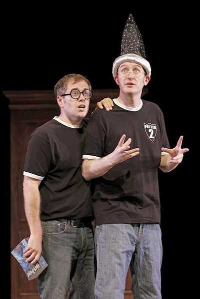 If only everything else in Daniel Clarkson and Jefferson Turner's tribute to the world's most famous and popular boy wizard stayed as effortlessly airborne. Originally from London, where it's played in various forms since 2006, Potted Potter is a delightfully low-tech and low-key labor of love. Too bad it's also low-impact and labored. The thrust of the showeven calling it a conceit would be stretching itis that Clarkson and Turner are going to dramatically recreate all seven of Rowling's books over the course of 70 minutes. (There's some nonsense about Clarkson blowing the budget on a dragon puppet, thus forcing the duo to do everything themselves, but they don't expect you to take that seriously.) And, with the aid of a bare minimum of set pieces (the credited designer is Simon Scullion), a few carefully selected props like wizard hats and wands (and, for Turner, who plays Harry, the requisite round glasses), and a considerable amount of energy, that's what they do. More or less. Clarkson, Turner, and their director Richard Hurst are obviously assuming (not at all unreasonably) that everyone in the audience already knows every detail of Harry's seven-year struggle against Lord Voldemort, and thus don't actually need a blow-by-blow recounting of events. That's a good thing, because the show glosses over or ignores entirely countless characters and plot points that have until now always been considered essential (Hermione is, for all intents and purposes, a bit part here), in the service of making their retelling "fun." And, given the guileless joy and creativity with which Clarkson and Turner approach their task, I suppose it is. But it's not as much fun as it seems like it should be. The thrill of this kind of performance should derive from the ways the actors achieve their theoretically impossible goal, not the ways they avoid tackling it. A cliché-counting breakdown of the events of The Prisoner of Azkaban, replacing the last book and half with a performance of a rewritten "I Will Survive," and of course that Quidditch game are amusing diversions. But they kill time that then can't be used for telling (or even just suggesting) the story, and the more that happens, the less energizing the show is. Although one suspects the evening is intended to recall The Complete Works of William Shakespeare (Abridged), it reminded me more of another Off-Broadway curiosity from several years back, The One-Man Star Wars Trilogy: a wild-and-woolly nerdfest on a culturally familiar topic. But the more famous the material, the further the creators have to take it to make it their own, and Clarkson and Turner are too willing to settle for easy, insight-free ideas. (The one exception: a strangely wry and potent dissection on the two themes of Deathly Hallows as being camping and death.) Because the show even struggles with internal consistencyTurner is presented as the Harry Potter expert, yet apparently forgets Dumbledore's eventual fate and can't remember the contents of a book unless he's holding itthe funniest moments are those that appear unscripted. At the performance I attended, a piece of chocolate cake brought down the house two separate times, apparently unintentionally, and some unexpected audience interaction garnered the biggest laughs. Clarkson and Turner proved themselves so adept at improv, in fact, that I wanted to see how they'd wing an entire performance; loosening their reliance on dumb plot devices and eye-rolling through lines (Clarkson reads the seventh book in his moments offstage, apparently) would only help. As currently constructed, however, Potted Potter is at its best when it's at its most free and least concerned with convention. It's also family-safe, naturally, but almost to a fault: Rowling's books captivated both children and adults because of how they well they blended magic and fantasy with tragedy and evil, but Clarkson and Turner have avoided any kind of an edge. What remains is unbridled fandom, entertainment that exists too often in an echo chamber. That goes a long way to explaining why the Quidditch game is so much fun: It's one of the few times all evening that Clarkson and Turner notice you're there.