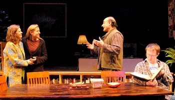 Such questions! So bossy, so holier-than-thou. And so irrelevant to anyone with either a thimbleful of self-respect or the good fortune to be in the audience at Atlantic Stage 2 for Annie Baker's hilarious new play Body Awareness. This cunning routing of the culture of perfection doesn't care who you are, or what you think of yourself or anyone. All it asks is that you check your preconceptions at the door, along with any beliefs that deep down we're all the same. That we're not is the central issue of the play and of Karen Kohlhaas's precisely pitched production: What matters is what's beneath the skin, the truth we keep hidden from the world behind a decorative façade - if you can get to that, everything else will fall into place. Baker makes this daunting task look so effortless, and sound so simple and real, that you shouldn't be at all surprised if you spring from your seat after 95 breezy minutes and are rarin' to go at it. Baker has chosen as her backdrop for all these life lessons Shirley State College in Shirley, Vermont. The liberal (in every way) arts college is kicking off its "Body Awareness Week" with high style and in high dudgeon: "We live in a very harsh culture," announces the event's organizer Phyllis (Mary McCann) on Monday morning, "a culture that encourages a real obsession with appearance, and, um, healing from this culture, healing ourselves, can only really take place once we're able to step back and examine the culture itself from a critical viewpoint." Such goals are more easily spouted than achieved for Phyllis, who needs (along with those she lives with) different kinds of healing. Phyllis lives with Joyce (JoBeth Williams), a high-school "cultural studies" teacher, and Joyce's 21-year-old son Jared (Jonathan Clem), who works at McDonald's and whom the women believe is an undiagnosed Asperger case. Jared insists he's fine, all while reading the Oxford English Dictionary for hours each day, soothing mental anguish by holding an electric toothbrush against his gums, and making constant death threats to Joyce and Phyllis. Even so, their relative well-adjustedness vanishes in the light of a new arrival: Frank Bonitatibus (Peter Friedman), a Body Awareness Week exhibitor nationally renowned for his photos of naked women (and, well, girls) that help them "reclaim their own body image." Joyce is intrigued by his philosophies. Phyllis is outraged and disgusted by his tactics. Jared is just thrilled to have a male role model who can explain to him the vagaries of dating and sex, subjects Joyce and Phyllis describe only in clichés. As Frank's presence stretches them all farther apart, Baker and Kohlhaas never lose their cool or their perspective, and always keep the focus squarely on the ever-shifting nature of identity. This manifests itself in ways absurd (Frank testing Joyce's lapsed Jewishness with a Shabbos prayer on a Tuesday night) and poignant (Jared's gradual realization that he might not be as flawless as he insists), but is invariably far funnier and less preachy than most treatments of these typically serious topics. The play and production work so well because you believe, as you must, that everyone onstage is regularly thwarted in attempts to attain his or her ideal self. Each character is striving for normalcy but is unable to define it, and thus can't bring it about; Baker misses no avenue in exploring how this can impact happiness, leaving Kohlhaas and the scrupulously chosen performers ample opportunities to state, restate, and understate the problems created by not believing fully in yourself. McCann gives Phyllis an approachable stridency that justifies every mood swing, every disappointment, and every expression of love as well-meaning, unquenchable hope. Joyce radiates insecurity, but Williams gives her a determination toward normalcy that leaves her as emotionally unfettered as any mother or sister who knows she has nothing to hide from her own family. Friedman and Clem establish an uproarious contrast between Frank and Jared: Clem avoids conventional stereotypes as the young man who can't control his inherent insensitivity, while Friedman milks Frank's own self-imposed, question-mark callousness for all it's worth. Who, Baker demands of us, is truly defective? She suggests an answer in the play's final seconds, but it's far from a definitive one. After all, judging others and their motives is always easier than judging oneself, but the latter matters far more than the former. What matters most, though, is that the questions be asked. Body Awareness Week at Shirley College was created as a "catalyst" for that kind of discussion; Body Awareness embraces that as well, but is also a catalyst for comedy of the most cutting and significant kind.