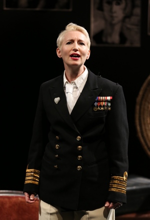 As Ms. Walker presents her, Suzy Solidor is a one-time toast of Paris who has long since been lost in obscurity save for the many portraits of herself she posed for, collected, and exhibited in her club and in a museum. There were, indeed, some 225 such works by the likes of Picasso, Erté, Dufy, Braque and others. Several of these are reproduced and displayed on one of the walls of the small theater, where about half the audience is seated at cabaret tables as if we were visitors to Solidor's boîte, La Vie Parisienne. The paintings, along with some recordings and a couple of motion picture appearances, are what remain of Solidor's public image. All I Want Is One Night is intriguing for its efforts at fleshing out the person behind the portraits. Unfortunately, we are dependent on disjointed fragments of memories as filtered through the confused and self-serving mind of the frail, 80-year-old we encounter at the play's beginning. When we first see the elderly Solidor (Ms. Walker), she is propped up on an oversized wicker chair, clinging to a treasured Man Ray photograph of herself and dressed like an admiral, "sea, sex, and sailors" being a recurrent theme in her life. She is being fussed over by her caregiver Giselle, whom Solidor often mistakes for her former lover Daisy (Rachel Austin plays both roles). Waiting to meet her is the Swedish artist Bengt Lindstrom (Alexandra Mathie), whose portrait of Solidor will be the singer's last. This gives us a framing device, but there is little else to provide us with a clear-cut plot. Instead, what we are presented with through the 65-minute play is a sketch of the life of the elusive performer whose biggest regret seems to be that she wasn't narcissistic enough. As she puts it, "had I simply stood in front of the mirror all the time, watching myself, surely my appearance would have stayed exactly the same." With a narrator who declares that "time is collapsing," all we can gather are glimpses of a life, male and female lovers, a bit of a childhood in Brittany, a longing for a father she never knew, and a quick sweeping-under-the-rug of her relationships with Nazi officers during World War II (she was convicted as a collaborator after the war, a woman, one of her lovers says of her, "with so few scruples, you got through the war by fucking Hitler!"). Ms. Walker, who never seems anything other than youthful in appearance or performance whatever her character's age at any given time, sings some of the numbers from Solidor's act while walking about the room lightly flirting with those who are seated at the red cloth-covered cabaret tables. Walker has translated the French songs into English, which helps our understanding of the lyrics but which also sacrifices the Frenchness of it all, as do her and Rachel Austin's pronounced British accents. Only Alexandra Mathie manages to keep things credibly grounded with the five different male and female characters she plays. If there is a touch of Édith Piaf (she and Josephine Baker are briefly mentioned in the play) in Solidor, there's even more of Marlene Dietrich in her. They shared a similar propensity for embracing sexual fluidity within their acts and personal lives, and both had deeper, darker singing voices that displayed an air of confident power. Walker includes a performance of "Lily Marlene," most closely associated with Dietrich, among the eight numbers she sings during the show. But overall, she does not seem right for the role that she has created. While she bears a resemblance to photos of Solidor, she is too soft in her delivery, too cautious with her interactions, and too sweet in her singing tone to be completely convincing. In the end, the potentially fascinating character of Suzy Solidor remains stubbornly out of reach.
