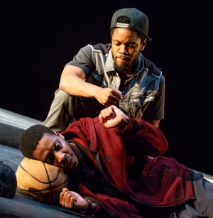 For some reason that is not particularly helpful, the play, which had a previous production last year at Chicago's Steppenwolf Theatre, is being touted as a contemporary riff on Samuel Beckett's Waiting For Godot. To cite the comparison might make it easier to advertise, but for whatever similarities that exist, the play is anchored not in Theater of the Absurd, but in the sadder and more sobering absurdity of reality. The "Godot"-ishness of the play comes out by placing its lead characters, two young black men named Moses (Jon Michael Hill) and Kitch (Namir Smallwood), on a small expanse of urban sidewalk, where they are more-or-less trapped in a plain that lies somewhere between hope and despair, contemplating an escape into a better world or, contrarily, into heaven. They pass the days by alternately razzing and supporting one another. The teasing is often funny, but the play carries a serious message about the undercurrent of fear that fills their lives, especially as, periodically, the lights flicker and both stop immediately and raise their hands in the air in anticipation of being approached by armed "po-pos" (police). An actual appearance by a policeman (Gebriel Ebert, who also plays a Rodgers and Hammerstein-loving character named Mister (aka "Master"), does nothing to alleviate their preconception. The cast of the one-act play (running just under 90 minutes), under Danya Taymor's direction, is uniformly strong. Playwright Antoinette Nwandu is an important new voice who has done an especially fine job of capturing the language of the urban streets and making it quite poetic. More importantly, in Moses and Kitch, she has created truly sympathetic characters who are trapped in what Moses explains is a "mega-four" for life. And despite the lighthearted moments and some flights of fantasy, never doubt that the message here is deadly serious, not when Moses asks, "how many niggas we know been kilt?" and Kitch is able to rattle off more than a dozen names without giving it much thought. If there is one take-away for us to remember, it is that we should not blithely dismiss those who are relegated to second class status as "stupid, lazy, violent thugs," to quote Moses. Such a "mean streets" label is an all-too-convenient way to justify hiding behind locked doors and allowing the authorities or self-appointed vigilantes to violently assault or kill minorities in the name of maintaining order.