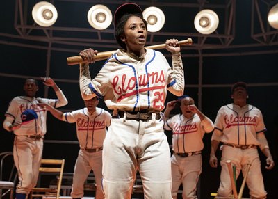 It doesn't happen right away. Toni (April Matthis) gets an arresting opening monologue about the weight and shape of the ball, and her immediate kinship with it. Her mama wants her to bond with the pretty girls, "because I guess she thought some of the pretty would rub off on me;" she'd rather play ball. Toni's always having to prove herself to her male teammates, the owners, her family and there's a fair amount of drama inherent in that. But enter her colleagues on the Indianapolis Clowns, and the focus starts to evaporate. We don't get to know these guys as well as we ought to. Most prominent are domineering Woody (Ezra Knight) and Stretch (Eric Berryman), the closest thing Toni has to a confidant. There's also Spec (Daniel J. Bryant), the team intellectual, and Elzie (Jonathan Burke), whose suspect sexuality provides a needless detour. The rest are nonentities, and the sense of time and place is loose indeed. The program says "1920s-50s," but that doesn't jibe neatly with the script references to Jackie Robinson and Hank Aaron. Evidently Stone played professionally from the late '40s to the mid-'50s, but often you'll wonder just when and where we are. Diamond would do well to erect a few more cultural signposts. Anyway, with the team introduced (sometimes they're the Clowns, sometimes they're a pickup team, but they always have the same names; it's confusing), MacKinnon or Camille A. Brown, listed as choreographer launches into a stylized balletic representation of baseball, which is lively but hasn't much to do with baseball. Then we're in Jack's Tavern, where the players hang and Toni is wooed and eventually won by Alberga (Harvy Blanks), a successful businessman and political operative; Blanks plays him with the requisite civility and dignity. From there, it's a real hodgepodge. We're on the road a lot, and frequently in a whorehouse outside Indianapolis where the guys seek shelter, and where Toni befriends Millie, quite beautifully played by Kenn E. Head, with convincing femininity and not a trace of condescension or caricature. She's the whore-with-a-heart-of-gold who helps Toni with womanly things, and the two ladies' heartfelt interactions are among the more diverting interludes. Some interesting side journeys happen: exhibition games against white teams, with the expected racist jeers; Toni's successful second career in skating; a childhood coach of hers who turned out to be a KKK member; the Clowns' owner's conviction that Negro League baseball is more about entertainment (read: stereotypical clowning) than ability. But there's also lots of small talk, very small, and in the process, we don't really get to know Toni, or anybody, very well. She's strident and confident and defiant, and Matthis plays her with not much variety, just a lot of swagger. The nadir is the Act One curtain, a speech roughly about white perversion of black culture, followed by a couple of minutes of the cast just standing still and silent, representing . . . heaven knows what. Toni Stone is not MacKinnon's finest hour. There's good baseball talk scattered throughout, particularly about the psychology of intimidating the opposition, and the cast, which also includes Toney Goins and Phillip James Brannon, is mostly swell; they're really wonderful at white-guy accents, from Irish priest to crass team owner. There's also Toni's occasional turn to the audience that helps us understand her a little better: She's a tomboy, but she's a woman, and she's conflicted about how much she must cater to wifely expectations and how hard she must fight to do the one thing she feels deepest in her bones, play ball. When confronted with unpleasant realities, she wanders off into reciting baseball stats. It's a cogent conflict, but it isn't much dramatized, not with Toni's monotone narrating most of the action at us. Dede Ayite's costumes are just right (I especially like her not going overboard in dressing the men up in drag for the women's roles), Allen Lee Hughes's expressive lighting has one stunning moment when Stretch is driving the team bus and we see the headlights from another car reflected on him, and Broken Chord came up with some atmospheric original music and efficient sound design. Toni Stone should be about empowerment and fighting the odds and being one's own person at all costs, and what baseball fan wouldn't like to know more about the Negro Leagues? That's all up there, but it's so muted. Diamond's rambling dramaturgy keeps bobbling the ball.