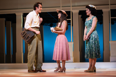 The Light in the Piazza, which originally ran on Broadway in 2005-2006, is a tale made of two intersecting stories (the book is by Craig Lucas). One part is a romantic love story worthy of Romeo and Juliet (or Tony and Maria, if you prefer), though with a far happier conclusion. The other is a story of regret and self-recrimination that finally makes peace with itself. The two components merge during a trip to Florence, Italy, in the 1950s by an American, Margaret (Ruthie Ann Miles, on a brief leave from the role of the Beggar Woman in the Broadway revival of Sweeney Todd)), and her daughter Clara (Anna Zavelson, making an auspicious New York theater debut). Clara is 26 years old but has yet to break free of the watchful eye of her mother owing to a childhood accident that has left her, to a certain if unspecified degree, developmentally disabled. Because the accident happened under her mother's watch, Margaret has been racked with guilt ever since; she also has been mostly ignoring the fact that her own life has been stymied by continuing to live in an unfulfilling marriage. The trip is meant to be a relaxing and refreshing break for both of them. But there is more to Florence, as both women discover, than tourist sites and art museums. Before you can say "buongiorno" or "buena sera," Clara's heart takes flight the moment she meets a handsome young charmer, Fabrizio (James D. Gish, rounding out the marvelous lead threesome), and it is love at first sight for both of them. This part of the story, like most tales of romance, has its ups and downs, but it is clear from the start that they are meant for each other and that love will conquer all. The more complex story is that of Margaret's personal struggle (to let go of her daughter and to find her own voice), made somewhat more intriguing in this production by casting two Asian American women in the roles of mother and daughter. You can take it, of course, as color-blind casting, but it can also be seen as adding an additional layer of "foreignness" to Margaret and Clara, caught up in a setting that is both romantic and a little scary. This outsider perspective is further reinforced by the fact that some of the songs and chunks of the dialog are performed without translation in Italian; thus, we are asked to share their feelings of being at least a little lost. Not to worry, however. There is no missing the meaning as expressed most effectively by the cast (along with some, possibly unnecessary, explanatory asides to the audience). Beautifully directed by Chay Yew, the rest of the cast members include Andréa Burns and Ivan Hernandez as Fabrizio's parents, Rodd Cyrus and Shereen Ahmed as his brother and sister-in-law, and Michael Hayden as Margaret's husband, whom we meet briefly during a couple of long-distance phone calls. The ensemble is particularly effective at providing a sense of a busy Florentine thoroughfare, with nuns and priests, tourists and tour guides, and even bicyclists in great abundance. More than anything, it is Guettel's captivating music that is so rewarding in this production. Label it operatic or neoclassical or soaringly melodic, Encores! does itself proud in its service to the score. Here we not only have the superb singing voices of the cast members, but the happy reunion of Rob Berman, back as guest music director on hand to conduct the orchestra. It rarely gets any better than this! The Light in the Piazza