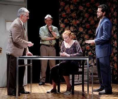 At least it starts out with potential. The "suspect" is Miriam Hemmerick (Gretchen Hall), a 33-year-old woman who tried to cash a series of Social Security checks made out to her parents. When Raina Briar (Leslie Hendrix), a governmental investigator, comes by to inquire, she discovers that Miriam's mom and dad have vanished, leaving their obviously ill-equipped childwho routinely wears a plastic astronaut helmet, memorizes years' worth of newspapers word for word, and is apparently deathly allergic to the number 43home alone. Raina's questioning leads to Miriam's implosion and an ambulance ride that eventually lead her to the police station, where everyone is sure she's the cause of her family's disappearancewith the bloody scissors and a severed finger found in the Hemmerick house apparently all the damning evidence needed to send her away. The rest of the two-hour play is devoted to how Raina lost one child and is estranged from another, and imprints on the desperate Miriam, demonstrating how alike the two are, and why discovering the truth is every bit as important for her as it is for the younger woman. As the case proceeds, they begin forming a new family based on trust and shared experiences that will let them weather whatever the ultimate verdict is. And, for much of the evening, the outcome doesn't look good, so they know to cherish every minute they have getting to knowand helpeach other. Unfortunately, the too-thick gloss of cuteness the story has been given never lets it chill or warm; it stays buoyed steadily at room temperature. Henry has tried too hard to present Miriam as a psychological victim, making her not just developmentally challenged but almost too dopey to be the central figure. He focuses so much on her obsessions with pies (whether pot or Moon) and crossword puzzles (she has a literal breakdown when someone asks her for one too many clues), and her toy-box language skills (among countless other deployments, she refers to a psychiatrist as a "shrinky dink" and male genitalia as a "knick-knack"), that he forgets to develop her much beyond her surface-level love for space travel, thus never convincing us that Miriam's permanent lock-up would be a tragedy. More vexing is the play's tendency toward "secret-itis," which keeps narrative-shaking revelations under wraps until precisely the correct moment in Act II, regardless of whether they could be believably revealed earlier. Too often, the scripting seems as arbitrary as Miriam's own traits, with the three supporting characterspublic defender Grey Collins (Matthew Humphreys, police detective Leo Garnes (Michael Cullen), and prosecutor Kenneth Sharpe (Michael Rupert)registering as little more than good-cop-bad-cop ballast. Whatever Miriam did or not do is, alas, far less interesting than the relationship she forms with the anguished Raina, which develops in such lurching fits and starts that the handful of arid subplots (will Kenneth win the election for county judge? Will Grey ever ask out Raina?) have no choice but to fill in the vacuum. Embler has not directed with any particular finesse or fluidity, which hurts the dreamlike feel Henry was obviously going for. (Shoko Kambara designed the adequate, if slightly clunky, unit set.) His work registers most troublesome in Hall's performance, leaving the actress speaking with the affected puffed-cheek dialect of a toddler and banging the side of her head to dislodge long-forgotten memories. You want to relate to Miriam, but no one has tried to find the balance between the girl and the woman within her, and instead emphasized the former quality to frustrating excess. This makes it impossible to accept that Miriam could survive alone for a day, let alone the months Henry requires, which subverts every other event in the show. Hendrix comes off considerably better, and presents a handsome interpretation of a woman crippled by her own disappointments. Her lacquered façade cracks and falls apart gradually as Raina comes to know and trust Miriam, and acquires by the final scene a touching genuineness that makes you feel something has been legitimately achieved. Cullen, Rupert, and Humphreys all deliver respectable turns in their roles, the last in particular projecting a good-natured sympathy that anchors and softens the tougher legalistic scenes. But their parts are functional at best: nothing more than the catalysts necessary to bring Miriam and Raina together. Their union, and what they have to endure to get there, is fitting material for a play, and what ultimately redeems 7th Monarch. But for the play as a whole to succeed, Henry would need to approach the rest of his elements with no less care and earnestness, and trust we'll understand and incorporate Miriam's nuances without excess ornamentation. There's no reason that the dark and complicated themes Henry marshals here shouldn't be incredibly attractive to adults, but they're difficult to swallow when they're wrapped in what too often feels like a play for children.