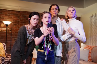 Honestly, after the anguish of last week's Supreme Court rulings, I, as an inveterate Democrat, did not think I would have the emotional fortitude to endure a show that celebrates (or at least renders a potent reminder of) the legacy of the 45th president. To its credit, though, the comedy-drama does not gloat, nor does it wallow in self-pity about the state of the nation and who is responsible for the roiling tensions. Instead, it pokes and prods at our preconceived notions of self-identified conservative and liberal, female and male, voters. 53% Of consists of four separate scenes that take place between December 2016 and March 2017. The first centers on a meeting of four white Republican women in a well-appointed suburban home in Bethlehem, Pennsylvania. (Emmie Finckel's astute scenic design and Mextly Couzin's atmospheric lighting are spot-on throughout.) They are planning for the recently elected president's upcoming visit, and the main order of business is to determine who will provide the presidential introduction. Denise (Anna Crivelli), a former prom queen (as she likes to periodically drop into the conversation), believes she should make the address. Mousey Sue (Grace Rex) caves quickly when she is told that her religious fervor might scare the guest of honor, and flighty Vicky (Cathryn Wake)–as the other women impress upon her–suffers from terrible stage fright, so she could not possibly take on the role. Leslie (Marianna McClellan), who is dealing with some domestic turmoil, is the only other reasonable contender, and neither she nor Denise will graciously concede the once-in-a-lifetime opportunity. This contest of wills is tabled with the arrival of PJ (Eden Malyn), who has joined the group on the invitation of Leslie. Wearing a sweatshirt with an emblazoned Confederate flag on it, PJ tries to assure the organizers that the image does not mean what they think it means. The red, for instance, represents Christ's blood, "the white border is God keeping us safe," "the blue X is Saint Anthony," and all of those stars, naturally, signify God's hands. The meeting deteriorates as the conversation turns to uncomfortable accusations of racism. In the next scene, we meet the women's husbands (played by the performers who portrayed the wives previously). The men have gathered for a men-only inauguration party, and they drink beer, grandstand, and cheer the swearing-in as if it were a 50-yard touchdown. They try to out-bro each other by removing bottle caps with their teeth, but things turn tense when one of the men admits to a sexual exploit that crosses the line even among these hyper-heterosexuals. The final two scenes focus on a collective of liberal women (with the actors effortlessly morphing into the new characters through the help of Lux Haac's witty costumes) in Brooklyn. The friends meet to organize actions, console one another about the spate of the president's executive actions, and regularly give an award to a notable group member who is the "Bad Ass Woman of the week." The women claim to be exceedingly aware of their white privilege, but they are clueless in the ways in which they wield it. This is particularly evident in their unintentional alienation of KJ (Ayana Workman), the only Black member of their group. The women talk a good game about the evils of gentrification and the miracle of intersectionality, but they nonchalantly make blanket assumptions about political affiliations and race. Under Tiffany Nichole Greene's resourceful direction, the ninety-minute play moves swiftly, and it hits its satirical marks efficiently. All of the actors are terrific, and they transform effectively without too much caricature into the different characters. (Each performer takes on two or more parts, except Workman, who is outstanding in her comparatively small role.) By the end of the evening, the playwright and the performers urge the audience members to check their own preconceptions separating "us" from "them" in terms of politics, race, and gender. However, because of the relative brevity of the scenes, there is not a chance to get fully developed characters, so there is a sketch-like quality to the evening. Even as the play unpacks familiar stereotypes, it sometimes falls back on them to earn easy laughs about conservative and liberal quirks and lifestyles. Indeed, this is a rare work that would benefit from being longer. 53% Of does not satisfactorily explain, nor could it, why a huge number of white women supported a candidate whose values seemed to be in opposition to their own. Nevertheless, for anyone outside of that percentile, the play offers a useful rejoinder that reduces these voters to a number: They are complex individuals who hold contradictory views. They are intractable and will not give one inch. They can be laughably hypocritical at times. Just like us. 53% Of