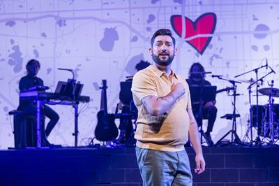With book, music and lyrics by Donald Rupe (who also directs), From Here is reminiscent of In the Heights, Lin-Manuel Miranda and Quiara Alegría Hudes's valentine to Washington Heights. Daniel (Blake Aburn), a gay, Floridian stand-in for Usnavi, is the musical's narrator and emotional center. At 34, Daniel is estranged from his mother Becca (Becca Southworth), who blames her son's homosexuality on the abandonment of her husband and Daniel's father. (The fact that Daniel, who appears quite secure in his sexuality and has had a long-term boyfriend, just came out to his adoring mother at age 33 is just one of the narrative's unbelievable elements.) In any case, he leaves her a voicemail every day to both needle her and remind her of their once close relationship. The other central figures in Daniel's life include his ex-boyfriend Michael (Jullien Aponte), who is now in a relationship with Jacob (Devin Skorupski), a presumably forgettable twink, and Jordan (Michelle Coben), Daniel's best friend since adolescence. Ricky (Omar Cardona), Jordan's shy and unprepossessing workmate, soon becomes an important part of Daniel's circle of friends. Unfortunately, Rupe's book scenes and songs lean heavily on clichés, gay stereotypes, and platitudes in its depiction of queer life in Orlando. For instance, Jordan opens her nightclub show with a song called "Gay Is Better," which is an ode to "the perks of being queer." Apparently, not only do coupling gay men get to double their wardrobes, she sings, but they are smarter and more cultured (because of their love for musical theatre, naturally) than their straight male counterparts. The song includes the cringe-worthy cri de coeur: "To hell with the straight men–I'm taking a stand!/ Homos/ Have good chromosomos/ I prefer homos! Let's give them a hand!" Chromosomos? Later, during a "gayme" party, the celebrants engage in a myriad of competitions while downing gallons of vodka since, apparently, there was an edict in 1985 in which "supreme leader" Elton John decreed that "gays must listen to Madonna, judge everyone around them, and drink vodka sodas." (As a red-wine, Judy-Garland gay, I somehow missed that mandate.) At the same party, a young woman sings, "Yes, every night I spend with homosexuals/ Ends up naked, drunk, unusually angry, and knee-deep in McDonald's fries!" (Adonus Mabry's orgiastic choreography doesn't help matters here.) The music, performed by a four-piece band and arranged and orchestrated by Jason M. Bailey, when divorced from the awkward lyrics, is more congenial. The cast winningly puts over the pop- and musical-comedy inflected songs, and Southworth and Cardona are impressive in their belting, soulful numbers. Aburn handles his numerous ballads efficiently but is less effective delivering the fourth-wall breaking narrative commentary. Then again, it would be difficult to make many of the unfunny laugh lines land. For example, comparing the show's emphasis on parent-child relations, the character says, "I like to think of it as the gay version of the hit Broadway musical 'Gypsy.' I know, bitch–Gypsy is the gay Gypsy." I still don't know exactly what that means. And yet, after more than an hour of similar head-scratchers, something rather miraculous happens in the 105-minute show. A well-appointed living room set materializes on the mostly empty stage that had been previously fortified only by grey cinder blocks, and the cast members gradually congregate onto the scene. (Philip Lupo designed the sets and lighting, and J. Marie Bailey designed the costumes that reflect a cross-section of queer identity.) As the characters deal with the immediate aftershocks of the Pulse massacre, genuine humanity emerges. They are no longer portrayed as conventional images of queer folk, but as a group of individuals joined together with a shared sense of fear, anger and grief. Their song, "There for You" does not contain profound and witty lyrics but instead pedals overly familiar expressions of comfort. "When you have a broken heart inside your chest," they sing, "There's one thing you should know/ I'll be there for you/ I'll be there for you." The banality of the verse seems both poignant and appropriate since finding the cleverest and most precise words and images to convey the sense of loss is futile. From Here originated at the Orlando Fringe Festival in 2019. In light of Florida's Governor Ron DeSantis's veto of grant funding to all of the state's arts organization supposedly due to a single queer entry in a fringe festival, shows like this are imperative. From Here Through August 11, 2024 Renaissance Theatre Company Alice Griffin Jewel Box Theatre at The Pershing Square Signature Center, 480 West 42nd Street between 9th and 10th Avenues Tickets online and current performance schedule: fromhere.com.