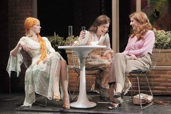 The tone is set early on with cunningly inspirational numbers like the wistful "Setting Your Sights" and the blandly optimistic "I Don't Wanna Miss a Thing" for the teens and "Let Life Happen" for the sorority sisters. Even more directly character-centric numbers - like Mary's "Fly Into the Future" about breaking away from her mother's bad example, Kathy's "Cute Boys With Short Haircuts" about the aftermath of her breakup with her long-term boyfriend, and Kathy's attempt to patch old wounds with "The Same Old Music" - feel more like half-finished BMI Workshop exercises than vital theatrical elements. As Heifner has released or rewritten so little of his dialogue, perhaps Kirshenbaum didn't have a choice - musicals can only truly sing if they're allowed the chance. Ivey's fluid staging, which makes full use of Anna Louizos's cozily elegant sets and Joseph G. Aulisi's period-evocative costumes, tries to compensate, but can't; Knechtges's dances, while spirited, are as one dimensional as the songs to which they're attached. The same is true of Lauren Kennedy's performance as the free-wheeling Mary and Sarah Stiles's as the considerably toned-down Joanne - they sing prettily, but evince no sense of who these women are, or where are why they're going. Anneliese van der Pol, however, is a different case. As Kathy, she makes a complete and convincing evolution from the work-focused girl to the wayward woman who can't stop searching for her true purpose. She's the only one of the three actresses that effects physical changes throughout, popping her initial inner bubbliness for the college moments and adopting a stylish, creamy sophistication for the post-school scenes that give her a grace and a confidence no one else has. She even modulates her otherwise obvious three-part song, "An Organized Life," from a slice of comic nothing into a burst tender tragedy that almost makes you feel for all she's lost and gained. Of course, just minutes later, Mary, Kathy, and Joanne walk off into a literal sunset to the strains of a final bit of musical banality, "Looking Good," which attempts to trade on the irony that these women who were once obsessed with personal and societal appearance have indeed made something real of themselves after all. Cue the awws. It's the perfect feel-fine ending for everyone except those who believe, unlike Vanities's characters and writers, that musicals - like life - can and should be more than skin-deep.