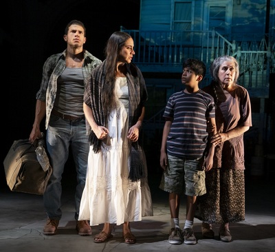 The reconceptualization of myths has become something of a specialty for Alfaro. In earlier plays, he took on Electra (Electricidad) and Oedipus (Oedipus El Rey), giving both an updated bilingual Latinx flair. The Public mounted a stunning production a couple of years ago of the latter, under the direction of Chay Yew. Yew is back on board to helm Mojada, the title of which is a pejorative term used to describe undocumented immigrants. The locale of the play is a movable feast, conforming to the city where it is being performed. It once bore the longer title Mojada: A Medea in Los Angeles; here in New York, the setting is Corona, Queens. Medea, Jason, their son Acan, and their servant Tita (a wonderfully wry performance by Socorro Santiago, who becomes the stand-in for the Greek Chorus) are living in a house owned by Jason's boss, Pilar. A wealthy and successful immigrant businesswoman, Pilar (Ada Maris) finds the much younger and muy guapo Jason a beddable prize well worth getting her claws into. The play taps into elements of the Greek myth as it examines the domestic lives of the uprooted characters who are striving to fit in. Jason (Alex Hernandez) is fixated on assimilating and getting ahead, and he plans to take Acan (Benjamin Luis McCracken) with him, even if it means abandoning Medea. If you are familiar with the source material, you can pretty much figure out that no good will come of this. As in the myth, the soul of the story belongs to Medea. In this role, Sabina Zúñiga Varela gives a shattering performance that grows ever more disturbing over the course of the 100-minute intermissionless play. When we first meet her, she seems quiet and complacent, partly by inclination, partly because of the trauma of her past. She also suffers from debilitating agoraphobia that keeps her from stepping beyond the safety of her home, her sanctuary where she works day and night as a seamstress while earning far less than the minimum wage. With Jason often away and Acan at school, she only has Tita, the effusive churros seller from the neighborhood (a vivacious Vanessa Aspillaga), and her own churning thoughts for company. But there is no sanctuary for her, not really. And the gathering storm she has attempted to shield herself from strengthens and corners her, leaving her with no escape until she creates an explosive one of her own. Mojada is not subtle in laying out its socio-political purpose. Much is made of the ways in which undocumented immigrants are taken advantage of, just as much is made of the diversity of Latinx peoples. Jason and Medea are Mexican "mojados"; Pilar is Cuban and a legal immigrant, which coveys a higher status; Luisa the churros vendor is Puerto Rican and explains how she is trying to be accepted; and one of the other refugees they talk about is Guatemalan. Luis Alfaro, the playwright, is too good a writer for things to fall completely into speechifying mode, but the play does offer up a lot of "tell," where "show" might be more effective, and the inspirational source, the mythic quality, is at times shoehorned into the plot. Nevertheless, this is decidedly a play for our time, and even when it falls into polemic discourse, it packs a real wallop.