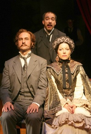 The new stage version of the iconic Jules Verne adventure novel at the Irish Repertory Theatre, a coproduction with Cincinnati Playhouse in the Park, shares nearly every feature with last season's surprise Broadway hit. Small cast telling a giant story with perpetual-motion energy! English people doing wacky things! Enigmatic-looking leading man who makes glowering into an art form! A running time of two breezy hours! Of course, the inverse is also true. If The 39 Steps landed at your theatregoing doorstep with a window-shattering thud, you're not going to find much of value here, either. Psychotically incompatible acting styles! The unabashed celebration of theatrical artifice for artifice's sake! A serious-minded work from a major artist being exploited for purposes of sophomoric comedy! A running time of two interminable hours! Which camp is yours? I stake my claim to the latter, with far more energy, enthusiasm, and happiness than I could muster at any point during Michael Evan Haney's inexhaustibly annoying staging of Mark Brown's potentially worthwhile adaptation. Brown has skillfully collapsed Verne's expansive literary travelogue into a tight, taut package that respects its source without being enslaved to it. And unlike The 39 Steps, the compression here for a miniature ensemble makes sense, highlighting the gone-in-a-flash nature of both the story and the production. Then there's all that joking, all the snide commentary on the storytelling method itself and on pop culture references, that makes it difficult to appreciate - or in most cases, even discern - Brown's accomplishments. As Phileas Fogg (a deadpan-on-arrival Daniel Stewart) traipses around the globe trying to win his precious 20,000-pound wager and elude the determined Detective Fix (John Keating), he encounters allusions to Titanic (look, they're standing like Leonardo DiCaprio and Kate Winslet on the Titanic's deck!), action-serial tropes (can he possibly run through the train in time?), and hoary slapstick standbys (one character mispronounces his name once, and can never get anyone to say it correctly). Such shenanigans have worn out their welcome long before Fogg first breaks out his passport. Around the World in 80 Dayslike The 39 Steps, is best when it uses theatre to create theatre without apologies and without irony. When Fogg is in India, where he meets and rescues the beautiful princess Aouda (Lauren Elise McCourt), the cast assembles an oddly enchanting elephant from a messy collection of found items. Later on, a shootout on an American train assumes epic proportions with little more than the company's creative bouncing and the precise rapping out of bullet sound effects. Otherwise, Haney never justifies his concept - it all looks and behaves like an on-the-cheap way to produce an expensive play with a title that has excellent name recognition. David K. Mickelson hasn't much skimped on the costumes, which does help establish a visual continuity, but everything else could have been bought off the rack at the 99-cent store, with change forthcoming. This applies to the performers as well - with the exception of the usually upstage "foley artists" Elizabeth Helitzer and Mark Parenti, who ensure that the sound effects keep flawless pace with the motion of the story. But Stewart is short on charm, and never provides a compelling reason for you to want him to win the bet; McCourt is on permanent slow fizz, too laid-back to arouse the passions her character must; Keating and Jay Russell, as a dozen other characters each, distinguish themselves more by their ability to change costumes quickly than differentiate various people on any deeper level. Special mention, however, must be made of Evan Zes. He plays Fogg's doting but heroic French servant Passepartout with all the delicacy of a 15-car pileup. His facility with pratfalls and other forms of physical comedy simply can't excuse the mincing, mugging, and constipated quackery that constitute his entire portrayal of what should be an underrated man made good. His most gag-inducing running gag involves his melon-spurting accent, typified by his constantly referring to his father's prized pocket watch as "a perfect time pisssss." It's unthinkable that Zes would be allowed - or encouraged - to perpetuate similarly disgusting stereotypes were he playing (for example) an African- or Asian-American character. What he's doing reeks more of desperation than invention - worse, it's simply not funny. And even if it were, such mocking of an entire nationality (Verne's, no less!) contributes nothing to our understanding of either Passepartout or Around the World in 80 Days. This is, however, not so surprising. When you put classics through the meat grinder and burn the result beyond recognition, you still have to dress it up somehow. And at that point, how concerned can you possibly be with good taste?