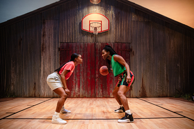 The play takes place in rural Arkansas in 1997, significantly the same year that the WNBA launched its inaugural season. Inspired by these women role models, the five Black 17-year-old students who make up the Lady Train starting lineup are psyched by the potential opportunities that lie in their futures. But first, you've got to have a championship season. Which is why, when we first meet up with them, they are gathered for a practice at the home of their de facto team captain, Starra (an intense Erica Matthews). Starra, who has been the leader of the pack since seventh grade, knows that the recruiters are already starting to watch them (her!), and she is determined to see to it that the team pulls out all the stops in order to win. "Everyone plays a li'l dirty," she says. "It ain't a foul unless the refs call it." At the moment, the "ref" they are most worried about is their mentor, Coach Pace (Christiana Clark), a sea of calm supporting a flotilla of teenage turmoil. As we soon learn, one of them, April (Brittany Bellizeare), is pregnant and Coach does not allow pregnant students to play. It's not against regulations, but a bad experience in the past has fixed this decision for her. Will they be able to change her mind? Will they be supportive of April as she struggles with whether or not to have an abortion? These are two of the key issues that the play focuses on. But there is also Starra's self-justified notion of playing dirty in order to win, especially when it extends to life beyond the game. She concocts and carries out a pretty nasty scheme against the newest member of the team, Sydney (Tamera Tomakili), who recently relocated from California. More than just an outsider, Sydney is also at least as good as Starra on the basketball court, and her presence threatens Starra's plans for herself. Between April's plight and Starra's win-at-all-costs stance, Coach's synergetic approach to the game is on the verge of collapse. While these three (Starra, Sydney, and April) are the central characters, the team is nicely rounded out by its other two members. They are Donna (Renita Lewis) and Cherise (Ciara Monique, delightfully quirky), who are in a budding romantic relationship. Cherise is particularly interesting to watch as she tries to reconcile her religious faith with everything else that is going on with her teammates. Eboni Edwards joins the cast in supportive roles as a referee and as an up-and-coming sophomore member of the team. Director Lileana Blain-Cruz keeps everything moving at a rapid pace, in keeping with the characters' adolescent energy, something the cast members display in great abundance. Set designer Matt Saunders gives us not one, but two basketball courts and also throws in a couple of surprises along the way. But the biggest surprise may come late in the play, when even those in the audience for whom basketball is not a way of life will find themselves rooting and cheering for Lady Train as they throw everything they have into the championship game. Flex