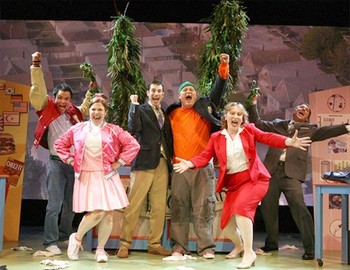 Theatreworks USA's new production of Joe Iconis's musical The Plant That Ate Dirty Socks is so dripping with cool, in fact, you shouldn't be surprised to see New York's ice cream vendors picketing outside its berth at the Lucille Lortel Theatre. Or if taking your son or daughter to this roundly charming hour-long show not only convinces him or her that theatre is hip, but starts a lifelong addiction for which the only cure is more. From the instant Jason Williams bounds onstage at the start of the show, pounding his fist in the air and shouting "woohoo!" as he extols the endless virtues of the first day of seventh grade, you can tell you're in for a great time. Iconis's driving, fast-bouncing song, sung with such exuberance by the driving, fast-bouncing Williams, captures all the uncertain but unquestioning expectation of youth. You'll be instantly transported back to an age when you really believed anything could happen. That's crucial, because in this show (as the title suggests) pretty much anything can and does. Based on Nancy McArthur's popular series of children's books, Iconis's show tells the story of two brothers, messy Michael (Williams) and neatnik Norman (Lance Rubin), who learn to love each other while caring for some very strange plants they grew with magical mail-order seeds. Norman's plant Fluffy and Michael's plant Stanley don't have much more in common than their owners do, except for their appetite for one particular piece of clothing. (Stanley prefers the dirty kind, Fluffy takes them clean.) Michael and Norman have to cope with the usual skeptical parents (Lorinda Lisitza and Kilty Reidy) and nosey friends (bratty cheerleader Patty Jenkins is played by Lauren Marcus; eighth-grade taste arbiter Jason is played by Jeffrey Omura), but they're ready for the challenge. Keeping their plants properly fed, though, is another matter, as is the prestigious science fair both boys aim to win. Laundry? Botany? Science fair? Iconis and musical director Jana Zielonka inject these mundane topics with such potent jolts of tuneful frivolity, even those with ages well into double digits will be hard-pressed to resist their allure. My personal favorite number was the infectious "Plants Make Wonderful Pets," but nearly every song soars: Michael and Norman share a gleeful paean to their pristine privacy in "Welcome to My Room"; spin their dreams of glory in the romantically rocking "If I Won the Science Fair"; face their famished flora in the breathless "I Saw It Suck Up a Sock"; and face down their gossipy neighbors in the buoyantly buzzing "Talk of the Town." Director John Simpkins and choreographer Jennifer Werner keep the show pulsing with all the energy of a Saturday-morning cartoon marathon, while Michael Schweikardt's sets, Tracy Christensen's costumes, and Chris Dallos's lights summon up all the accordant visual appeal. Eric Wright's plant puppets are endearing, and are given luscious life by mostly unseen manipulator Michael Schupbach. The show's biggest drawback is that its performers don't blend easily into these surroundings. Rubin's angular five-o'clock-shadow face (unusual for a fourth grader) and overly adenoidal delivery, Reidy's grimacing grin and Lisitza's (literal) nail-biting angst, Marcus's vein-throbbing threateneuse, and Omura's unconvincing letterman wannabe test the boundaries of convincing cartoonishness. Williams, however, is a total treat as Michael, making him equal parts athletic, gawky, and needy - the epitome of a seventh grader struggling to come into his own. He makes it work that Michael seems to come from another planet. Speaking of which, it should probably be mentioned that The Plant That Ate Dirty Socks doesn't quite measure up to that more famous ravenous-plant musical, Little Shop of Horrors: It's got (a lot) less blood, (a lot) fewer surprises, and (a few) more nicks pocking its entertaining exterior. But it crackles and delights nonetheless, and could be ideal for preparing children for Little Shop - even if that show's message about not feeding hungry greenery runs counter to this one's, which will have your kids - and maybe even you - itching for Fluffy and Stanley to scarf down their next socks.