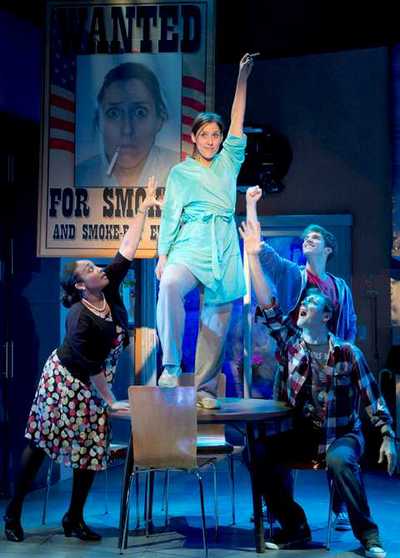 The sum total of the evening is a satire about American for-your-own-good regulation, focusing on how the titular character, a suburban mom named Pam (Farah Alvin), tries to maintain her favorite, tobacco-filled habit in a supposedly free country that doesn't value her right to choose. So far has the anti-nicotine movement spread, in fact, that her life is constantly monitored by a system called the Anti-Smoking Penalty Help You Xpect In America (or ASPHYXIA for short) that alternately spouts out inspirational and threatening words whenever it detects straying from the established orthodoxy. It doesn't help that neither Pam's husband Ernie (John Bolton) nor their son Jimmy (Jake Boyd) understand her fixation, and their religious neighbor Phyllis (Natalie Venetia Belcon) is especially intent on helping Pam replace her addiction with one to God instead. All this is actually fine ammunition for biting commentary, but it doesn't easily singonce you've cycled through the "I want to smoke," "Honey/mom, please don't smoke," and "You're going to hell if you smoke" numbers, what's left? Not much, so Russell and Melnick pad things out with so much filler their book show practically becomes a revue. Pam and Ernie remember their first romantic night together, Jimmy wishes he were black, Ernie (an aspiring musician) sings a couple of the songs he's writing, and so on, killing time with reckless, anchorless abandon until the 95-minute endeavor has run its course. Melnick has proven himself a gifted melodist very much in the thoughtful school of his grandfather, Richard Rodgers, with a memorable previous Off-Broadway credit in Adrift in Macao, and Russell's own work in musicals like Side Show and Lucky Duck is accomplished as well. But those works had stronger dramatic or comedic hooks, and thus were better able to produce songs that felt like they both belonged within those structures and like they belonged in the theatre. The irritatingly general and one-level writing here does not achieve even that distinction, loaded as it is with parched lyrics ("This is the final round of Russian roulette / Don't smoke that last cigarette," being a typical example), though Melnick turns out a hummable tune for the emphatic title song. What little depth on offer comes from Alvin, who is as usual wonderful, with her enveloping belt voice nicely capturing Pam's manic personality and complementing the crazed exhaustion that floods her every word and action. Belcon strains a bit at making Phyllis appear cloyingly religious, but is attractively committed to her portrayal. Bolton and Boyd do more nonspecific work but sing well and project plenty of energy. Sandberg's staging, augmented by A.C. Ciulla's grab-bag choreography, and the design (with sets by Charlie Corcoran, costumes by Michael McDonald, and lights by Jeff Croiter and Grant Yeager) are all effective without being even marginally innovative. The same would be true of the musical as a whole if not for its central premise, which resonates with considerably more urgency than was the case at its premiere at the 2009 New York Musical Theatre Festival. The tightening of the political landscape has led to increasing examples of bureaucrats telling you not only how you should, but how you must act, with restrictions against salt, trans fats, soft drinks, and many other things increasingly common in New York and elsewhere. This musical may deal with one specific vice, but it does hint at the chilling possibilities of what could happen when the irresistible force of government meets the unmovable object of self-interestand the results are predictably horrifying. The Last Smoker in America is too wishy-washy to have the nuclear impact it probably shouldit comes too close to suggesting that the ends do, in fact, justify the meansbut it highlights a simmering discontent in the landscape of the United States that one suspects could well play out in elections big and small in November and beyond. It's unusual that a musical takes on any issue of this nature in such a direct way, and for that Russell and Melnick should be applauded. Still, their statements would go down easier if the show containing them were as determined to be good as it is to be topical.