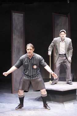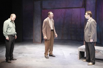 Both plays, which have been directed by Tim Ruddy, are set in Cork in the approximate present, though that says less about the works themselves than it does about Creedon (who admits in a program note that he was born there). And yes, the accents and a few specific references do peg the action as taking place entirely within a constantly developing Ireland. But Creedon succeeds at proving these same stories could just as easily be set in America, as he posits that fathers' and sons' unrealized (and often unrealistic) expectations for each other are just different, less mushy ways of saying "I love you." Well, most of the time. There's a hint of doubt in After Luke as to exactly what Dadda (Colin Lane) thinks of either the slow-ish Son (Gary Gregg) or the independent-minded Maneen (Michael Mellamphy). Only Maneen is technically his - the older Son has a different father - and the boys' mother has been dead for years. But both young men are convinced - not without reason - that Dadda has given the other favorable treatment. Maneen's desire to roam and rollick and Son's fascination for fixing cars aren't really compatible, and may have been fostered by Dadda's oft-stated desire to keep them apart as much as possible. Despite a few twists and a dollop or two of suspense, After Luke is little more than a thinly veiled (if advanced) adaptation of the Prodigal Son parable. And though it's enjoyable on that basis, it's an obvious, predictable retelling that the actors can't juice up quite enough. Lane is outstanding as the harried father, but Gregg and Mellamphy don't plumb many depths in their portrayals of the half-brothers, and neither finds enough comparisons or enough contrasts in the show to fuel their duel from start to (almost) finish.