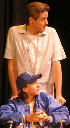All that sustains the Brooklyn family headed by Lee (John Fugelsang) and Dot (Carol Lempert) through the difficult fall of 1955 is a shared love of baseball, which older son Paul (Paul Iacono) considers a potential career and wheelchair-bound younger son Danny (Hunter Gallagher) sees as his lone salvation in a painful and probably short existence. They all love each other, of course, but Paul is growing bitterly resentful of the increasing amount of attention his dad pays Danny (with extravagant gifts ranging from baseball attire to prime World Series tickets Paul is denied), and Dot is concerned that the out-of-work Lee's spending could incite even more problems. It's all grandly old-fashioned kitchen-sink drama, both in its general approach to hand-wringing realism (despite a rickety memory-play frame), and in its content, which covers a few too many overwrought bases for its own good. But if there are missteps - violent scenes near the end of each act are of such questionably necessity they dilute the impact of the potentially powerful relationship between Lee and Paul, for example - they don't prevent the play from being a frequently affecting look at a family in crisis. Bill Russell's fluid direction helps keep the action progressing smoothly and cohesively even when the play stumbles in making sense of its many tangled components. Fugelsang overplays Lee's ever-present rage and Katie Neil can't make the underwritten role of Paul's would-be girlfriend seem essential. But the rest of the cast elicits all the emotional content possible from even the script's most awkward moments. Iacono and Gallagher are magnetic throughout their passive-aggressive and more explosive moments of sibling rivalry alike, while Lempert delivers a brittle but warm portrayal of a woman crumpling under the weight of far too many secrets. Better still is Jana Robbins, who as Pearl, Dot's meddling aunt and Danny's doting admirer, finds every laugh in a character that could too easily become a stereotypical Jewish busybody. With a core of intelligence surround by a thin shell of sex appeal and drenched in kindness, Robbins's Pearl is a delectable confection. She, much like the rest of And Somewhere Men Are Laughing, illuminates moments of heartwarming truth in too-familiar surroundings.