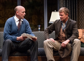 And then we have Days to Come, something of a footnote even among Hellman aficionados and scholars. This family drama about labor strife in a small Midwestern town managed no more than a seven-performance run on Broadway in 1936, and according to the notes for the current Mint Theater Company production, its sole New York revival to date was by the WPA Theater in 1978. The Hellman-fan friend of mine with whom I attended the Mint show said it was the only one of her plays that he had never seen staged, and I daresay we were both very much looking forward to it. Sorry to say, this is no unearthed treasure. In crafting a Big Issue work, an author can make the mistake of hammering home ideological points at the expense of character development. Hellman made almost the opposite error in Days to Come, which spends comparatively little time dealing with the plight of the striking workers and, instead, devolves for much of its length into a poorly written domestic drama or, rather, melodrama. Turns out there are major, unresolved issues and secrets among the Rodman family that have nothing to do with the labor-strife plot, including serial spousal infidelity apparently resulting from a combination of the wife's nymphomania (as it used to be called) and the husband's "weakness" (possibly also his latent homosexuality, or so it is vaguely implied). Whereas the personal peccadilloes and neuroses of the Hubbards and Giddenses only enrich the script of The Little Foxes, here we have a very different, counterproductive situation. Probably due to both the flawed writing and a lack of strong guidance from director J.R. Sullivan, the Mint production of Days to Come is inconsistently well acted. On the plus side, Larry Bull offers a nuanced characterization of the conflicted Andrew Rodman, scion and now head of the family that owns the brush factory where the workers are out on strike; Roderick Hill emanates strength and charisma as labor leader Leo Whalen; and Dan Daily as Sam Wilkie, Geoffrey Allen Murphy as Mossie Dowel, and Evan Zes as Joe Easter present vivid portraits of three strike breakers from out of town. But the normally reliable Mary Bacon overplays the mental instability of Andrew's sister, Cora; Jennie Brookshire lacks a sense of period style as his wife, Julie; and the moving performance of Chris Henry Coffey as Thomas Firth, the only one of the striking workers whom we get to meet, is marred by the inaudibility of several of his lines. If Days to Come has turned out to be a disappointment insofar as playability of the text, the production design is up to the Mint's excellent standard. Harry Feiner's gorgeous set for the living room of the Rodman home is so well appointed that, whenever the drama becomes turgid and/or boring, you can enjoy yourself by examining the exquisite scenic details the furniture fabrics, matching wallpaper and curtains, beautifully framed photographs and mirrors, bric-a-brac displayed in a hutch at stage left (props by Joshua Yocom), and the lovely, sylvan backdrop visible through the glass doors upstage center. This main set takes up the entirety of the Beckett Theatre stage, and if you read your program before the show or during intermission, you 'll wonder how the transition to Act II, Scene 1 in another location "an office-room, the empty side of a store in an alley" will be made. No spoiler here, but suffice to say that it's wonderfully well done, smoothly and quickly. As may be guessed from the fact that this play's premiere production closed in a week, the reviews were not good; Brooks Atkinson in The New York Times opined that "Making a spiritual tragedy out of a labor impasse is something Miss Hellman is not able to do. Days to Come is fairly tortured by the effort of trying." Maya Cantu's program notes tell us that the 1978 Off-Broadway revival prompted a more positive reassessment of the piece in some quarters, with Harold Clurman, for example, suggesting in The Nation that 1930s critics had misunderstood what Hellman was trying to create. The Mint staging should be seen if only for its rarity and, while you're checking off that box, you can decide whose side you're on. My feeling is that, in the canon of management-labor conflict plays ranging from Clifford Odets' Waiting for Lefty to Lynn Nottage's Sweat, and including the operatic The Cradle Will Rock as well as such lighter-fare musicals as The Pajama Game and Newsies, this one ranks pretty low on the satisfaction meter.