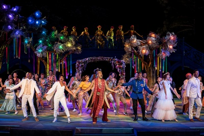 With music and lyrics by Shaina Taub and a book by Taub and Public Works director Laurie Woolery, who helms this production, As You Like It provides a delectable infusion of good will that is bound to fill you with cheer and high spirits, at least for as long as its 90-minute duration. Per the mission of Public Works, the performance brings together a mix of experienced stage actors and an ensemble made up of dozens and dozens of community members from all five boroughs of the city. And while the collective of New Yorkers may not be experienced theater pros, every moment of their on-stage presence represents an outpouring of love, with a communal spirit I haven't seen since the original Broadway production of Hair, which, to bring things full circle, happens to have been the very first show to be offered by the Public Theater back in 1967. So, how much of Shakespeare can you expect to see? Let's just say that, despite some playful tinkering, the bare bones of the narrative remain. Rosalind (Rebecca Naomi Jones, a delight) and her devoted cousin Celia (Idania Quezada) run away from the court of Celia's usurping father, Duke Frederick (Eric Pierre; you know he's evil because Taub has given him a Darth Vader-like theme song that accompanies his every appearance). They wind up in the Forest of Arden, where Rosalind's father, the tender-hearted Duke Senior (Darius de Haas), deposed and exiled by his brother, is holed up with his commune of followers. More significantly, also hanging about in the forest is Rosalind's heartthrob Orlando (Ato Blankson-Wood, a thorough charmer), another escapee from a treacherous sibling. Will Rosalind and Orlando overcome convoluted plot twists and gender mix-ups and wind up together in the end? What do you think? There is an altogether lovely rusticity to this production, perfectly suited to the play and the locale. To this end, Taub has provided a mix of pop and folk tunes, with appreciative nods to Shakespeare with numbers titled "All the World's a Stage" and "Under the Greenwood Tree." There's also a marvelous toe-tapping clap-along spirited song about the utopian world of the forest. Titled "In Arden," you could think of it as this show's version of "Aquarius" from Hair, with such lines as "We shall answer to adversity with kindness" and "We shall hear the language of our hearts and bones." In brief, no one enters the Forest of Arden without being changed for the better. Except, perhaps, for the philosophic Jaques (a captivating Shaina Taub herself), who already is at one with nature. Moments of surprise and delight are sprinkled throughout the evening, not the least of which stem from the design elements, from Myung Hee Cho's fairy-tale set, to puppetry by James Ortiz (the creator of Milky White in the current production of Into the Woods), and, notably, the crystal-clear sound design (credit the show's sound designer Sun Hee Kil and the Delacorte's 2022 sound system designer Daniel Lundberg). A polished band of five, conducted by Andrea Grody, does a splendid job of accompanying the show's musical numbers. It should be noted that this musicalization of As You Like It was originally produced for the 2017 season at the Delacorte, although its scheduled short run was made all the briefer by a particularly rainy week that resulted in cancellations. Thankfully, someone had the good sense to preserve it for just the right moment, to be offered up again just when we could all use this very special gift, an ebullient celebration of Shakespeare and of the very best of the spirit of the city of New York. As You Like It