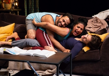 Agnes takes the form of an ensemble piece that allows for various permutations of interactions among the five characters. Four of these are roommates in a New York City apartment, holed up against an encroaching hurricane, the "Agnes" of the title. The storm is, of course, a metaphor for the one that is brewing inside, especially after the quartet is joined by a visitor from the past. The flat is home to siblings June (Laura Ramadei) and Charlie (John Edgar Barker), as well as to June's long-term girlfriend Elle (Mykal Monroe), and their fun-loving pal Ronan (a manic and very funny Hiram Delgado). They are joined by a refugee from the storm, Anna (Claire Siebers), an attractive charmer who, as the evening progresses, wreaks hurricane-like damage of her own. Charlie is the one who sits in the eye of the storm. He is loveable and smart, with an "IQ on the border of genius" as he puts it. But he is also on the autism spectrum, with Asperger syndrome that leaves him unable to read everyday social cues. A man in his early 30s, the same age range as the other characters, Charlie is keenly aware of his developmental disorder that "won't let me feel." He functions best when situations are predictable, and he actually does quite well with those familiar faces he sees on a daily basis. He has been under the loving if somewhat stifling watchful care of his sister June for a long time, but he wants to be more independent. More specifically, he wants to understand how to attract and have a relationship with a woman. To this end, he is doing everything he can think of to learn how to behave appropriately around others. This includes mysteriously leaving home for weeks at a time, to the dismay of his sister to whom no longer confides. But June has troubles of her own as well, especially when it comes to her ambiguous feelings about Elle, who is preparing to enter medical school and wants June and she to marry and settle down together. And while Ronan seems to be a happy-to-lucky bro type, a late night phone call to his ex-girlfriend suggests there is more to him than he generally shows to the others. Everyone is off balance, then, and is standing on already wobbly ground when in comes Anna, a seductive ill wind that blows no one any good when she arouses not-quite-buried old passions. Ms. McMullen, the playwright does an especially fine job of setting things up and letting the chips fall as they may, offering spot-on naturalistic dialog that is quite in keeping with her characters' personalities. By pushing their ages past their free-form post-adolescent years, a time of life that other writers like Michael Weller, Albert Innaurato, and Kenneth Lonergan have previously mined for gold, Ms. McMullen is able to place them all at a scary crossroads of adult self-determination and decision making. Director Jenna Worsham has done a fine job in creating a strong ensemble feel to the performances that is well suited to the small theater space. The set by Angelica Borrero is minimal but adequate, and Cheyenne Sykes' lighting and Daniel Melnick's sound design are, at times, used quite effectively to give us a feel for the sort of sensory overload Charlie has to cope with in his life. By the play's end, we not only care about and wonder what will become of him, but we also want to know whether June and Elle will be able to move forward with their relationship, whether Ronan will be able to push through to maturity, and even what will become of the troublesome and troubled Anna as she heads back out into the storm. Human connection, it seems, is not easy for anyone.