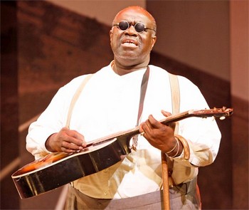 The show is unquestionably effective in presenting the aural panoply of the era. But it's less successful at saying much that's meaningful about Jefferson's or Lead Belly's life, or the specifics of their art. The sheer volume of the songs is exactly what prevents you from assimilating them, their inherent sameness of style what prevents you from appreciating their individual uniqueness. The talented group of performers may occasionally get notable moments in the spotlight - Yarbrough with Jefferson's "Got the Blues" and his wife, Alisa Peoples Yarbrough, with Glinn's "Craving a Man Blues," or Inga Ballard with the medium-rare suggestive "Butcher Shop Blues." But more often than not, the unremitting progression of the songs swallows, if not anonymizes, them altogether. Babatunde escapes this by dint of occupying the title role, and he couldn't occupy a better showcase for his talents. He imbues his leathery-gravelly voice with a down-home dustiness that conveys all of Jefferson's poverty and loss with each rumble of his authoritative baritone, and a warm sense of humor pervades every furrowed-brow glare and body-shaking belly laugh. Cavin, too, finds some wonderful moments as Lead Belly, making a moderately moving realization of the dues he owes his unsung pioneer. The rest of the company, which includes Carmen Ruby Floyd, and Timothy Parnham, make for a scrupulously polished, if low-charisma, ensemble. Since its first York appearance, the show has been scrubbed a little and eased into a lot - it's friendlier, more laid-back, and genially communal in a way it wasn't originally, even with Lilias White in a supporting role. Watching it is as painless as partaking of an on-premises blues trio at an upscale restaurant over your appetizer, or attending an energetic backers' audition trying to sell a full theatrical experience without all the pieces in place. But the problem with Blind Lemon Blues isn't that it's incomplete or difficult to follow, only that it tries far too hard to drown us in the music of Jefferson and his once-and-future contemporaries, none of which needs so hard and purple a sell.