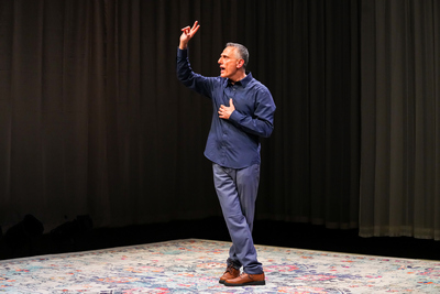 Last spring, Greenspan revived his magnificent one-person interpretation of The Patsy, a 1925 comedy by Barry Conners. In that piece, he performed eight distinct characters and succinctly conveyed the laughable high jinks of the drawing-room comedy while making the audience root for the Cinderella-like heroine at the play's center. The current project is more ambitious by far. Contrary to the title's description, Four Saints includes a cast of at least twenty saints (and, incidentally, comprises more than three acts), and it typically includes a large chorus. There is no characterization to speak of and no discernible plot. Yet, Greenspan mines the theatricality within Stein's scenarios and gives musicality to the words. Truthfully, ten minutes into the show, I wasn't certain I would be able to endure eighty more minutes. To be sure, I marveled at Greenspan's ability to memorize a script assembled with lines like, "Letting pin in letting let in let in in in in in let in let in wet in wed in dead in dead wed led," etc., but I was afraid that this histrionic parlor trick would grow wearisome. (The set by Yuki Nakase Link consists of a carpeted platform surrounded by sheer curtains and resembles the theatrical equivalent of a stately parlor.) To riff on Stein, I initially questioned whether or not there was a there there. In a strange way, though, the performance became even more enthralling and hypnotically entrancing as the evening proceeded. Under Ken Rus Schmoll's spot-on direction and Link's simple but effective lighting, the actor inexplicably becomes one with the words. Every utterance is imparted with the utmost conviction, and characterizations gradually emerge through gesture, balletic movement, and vocal inflection. Repeated phrases and genealogical lists of saints, for instance, offer a sense of solemn ritual, and there is divine mysteriousness associated with the dictatorial assumption that plays must be composed of acts, scenes, and stage directions. Stein is intent in showing the precariousness of such strict authorial and god-like control. Greenspan also rejoices in Stein's verbal wordplay and finds the unabashed silliness in some of the non sequiturs and flights of fancy. Take for example, the passage that calls attention to the laziness of June/moon rhymes: "Begin to trace begin to race begin to place begin and in in that that is why this is what is left as may may follows June and June follows moon and moon follows soon and it is very nearly ended with bread." In his dexterous interpretation, Greenspan draws out the childlike fun in these sequences that recall Lewis Carroll's "Jabberwocky" or the children's books by Dr. Seuss (Theodore Geisel). Last week I met with a friend who told me how excited he was to see the new David Greenspan opus. "I would watch him read the telephone book," he said. The telephone book may have a larger dramatis personae than Four Saints in Three Acts and perhaps a bit more drama, but I am sure my friend will be dazzled by this rendition. David Greenspan raises the bar for actors. In fact, he is so good, I can affirm that I would watch him read Gertrude Stein. Four Saints in Three Acts