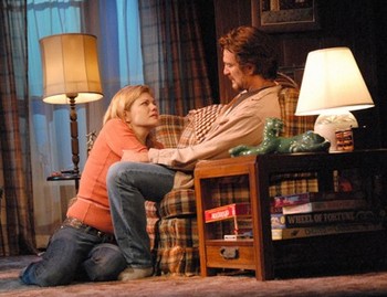 All the foresight and myopia converge in the young-old-money Ellen, whose condescending do-gooding - with the best of intentions and the worst of results - suavely underscores the tension of a nation in which no one wishes to be told how they must live. Progress is not for everyone; learning to cope with the inertia of existence is all that some can hope for. With very little fanfare, Thurber's play explores each of the characters tendencies toward motion or inaction, focusing with abrasive clarity on what they need to be happy - or just merely be. The only curse, which hovers above everyone in Scarcity, is not being able to live up to whatever your potential is. This is made clear only in one scene, set in the wake of an explosive card night with Louie and Gloria, in which Martha tearfully contemplates the disintegration of her life as lived with Herb. Johnston progresses so gradually and so naturally from elation to despair in recollecting her faded beauty that she momentarily recalls Amanda Wingfield from The Glass Menagerie: the woman of promise who's faded into irrelevance. A few other isolated moments, related to Louie's decibel-heavy exclamations drawing on his sexual rage or Gloria's dissatisfaction with the life he's given her, suggest deeper explorations of these characters deceptively normal problems. Otherwise, the performances tend to derive from stridency, skirting dangerously close to the realm of the Bundy clan from TV's Married With Children. But Thurber's group isn't made up of laughable losers - their plight is real, the children's need to escape from it for purposes of survival is genuine. In Gay's production, only Walt Spangler's cluttered tract-housing set reinforces the pressures toward conformity that alternately energize and enervate these people. Everything else serves as a form of commenting on them, including the lighting (by Jason Lyons) that employs enough flash-bulb effects to make you feel their life is the subject of a newspaper expose on the silent victims of President Bush's tax cuts. But Martha, Herb, and the rest don't need to be explained with the theatrical equivalents of quotation marks. They speak for themselves, their pride (or shame) of place telling us all we need to know about who they are and where they are (or are not) going. Scarcity, left to its own devices, is a bracing and compelling portrait of Middle America in crisis. But too often, this production - like Ellen - reminds us exactly why the meddling of outsiders can be far more dangerous than the problems we bring on ourselves.