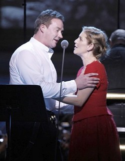 As played by the upliftingly enormous American Theatre Orchestra under Paul Gemignani's baton, Andersson's music captures everything that's richest about this adaptation of Vilhelm Moberg's "The Emigrants" novels. Establishing in awkwardly hopeful melody the challenges and persecutions of people in mid-19th-century Sweden and the frontier spirit they adopted when a group of them resettled in the United States, Andersson finds an appropriately oversized lyricism that borders on opera but remains strictly within the unapologetically staid world of European musical theatre. This approach doesn't guarantee a great deal of warmth, or any real sense of the unique character of America in the 1850s, but it's a fine approximation that convinces you it at least understands what's going on in its own language. Except for a few uncomfortably extended electric chords betraying Andersson's 1970s rock roots, the score behaves itself, trusting most in a hefty coterie of strings to communicate its romantic and Romantic ideals about life in the Old and New World. Songs that summon up visions of sun-parched farms, unsteady church services, roiling sea voyages, and personal devastation in the Promised Land don't skimp on the size or scope needed to make even the smallest emotions feel like the beginning and end of the world. So three solid, American cheers must go to Andersson for ensuring that the music conveys so much. And it's a good thing it does: Without it, this show would say nothing at all. As dramatically inert as it is aurally sumptuous, the Carnegie Hall Kristina is in every way other than its music typical of the late-1980s/early-1990s "pop opera" that won't go away no matter how many titles - like A Tale of Two Cities, The Pirate Queen, or for that matter Chess - bomb. Alternately incomprehensible and irrelevant, with English lyrics by Herbert Kretzmer (working from Ulvaeus's originals) that speak all the music's lofty sentiments in earth-chained language of no discernible consequence, this show is difficult to follow and impossible to care about. The format of the genre is so inherently chilly and distant that only a few titles ever emerged from it in any real way - The Phantom of the Opera, Les Misérables (for which Kretzmer also did the lyrics), and Miss Saigon were the exceptions, not the rules. It's when faced with something like this that you see what so many of the other entries lacked: an intimacy of character, of situation, that draws you in and lets you experience the world through other eyes, much the way the most significant plays and musicals of the past always have. Here you're never given that chance. Director Lars Rudolfsson uses scrolling projections to set the scenes ("Some of their names can still be read on crumbling tombstones..."), and someone will occasionally step out of the action to gloss over several months of happenings to make sure you understand what sets up the next song. But it's those in-between moments that encourage character, comedy, and bewitchment. Without them, you get a stagy, stodgy, and usually boring treatment of a story that - so the music insists - should be anything but.