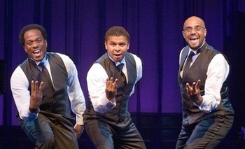 The big-voiced, big-living, and big-of-stature singing star, who died three weeks ago, embodied popular opera for millions all over the world in a way that his Three Tenors compatriots, Plácido Domingo and José Carreras, never quite have. So imposing do his spirit, image, and voice remain that the three young singers at the heart of Marion J. Caffey's show are forced to pay him homage in the show's final moments, even pointing out that without his influence, their show wouldn't have gotten where it is. This is undoubtedly correct. What's less clear is how much of a loss that would be. The two-hour evening is prevented from reaching any noteworthy heights by the very concept that fostered its creation: the uniting of classical music with Broadway, pop, spiritual, gospel, and more into a celebration of the African-American musical aesthetic. Each of the seven cast members - two groups of three alternate performances, and there's one general-purpose understudy - has a Playbill bio loaded with opera credits, and at least judging by the three I saw (James N. Berger, Jr., Duane A. Moody, and Victor Robertson), no shortage of charm. But because Three Mo' Tenors never takes full advantage of the uniqueness of their talents, we're never convinced these are people we want or need to get to know. Berger, Moody, and Robertson were most alive and captivating in the opening number, which not only reimagined Verdi's "La donna è mobile" (from Rigoletto) as a challenge sing-off, but was performed - as far as my ears could tell - without microphones. This glorious moment allows you to experience all of the color, shading, and technique that the performers have striven since childhood to accrue, and experience the music the way it was intended to be heard: completely live. It was as if conceiver-director-choreographer Caffey were acknowledging the oft-unstated truth that opera singers never sound better than when they're allowed to sound natural. The rest of the show proved as shamelessly and lifelessly amplified as most of what musical theatre fans are forced to endure today. But the problem is less the sound than the choice of the material, which does little to support or reflect these artists' true gifts or personalities. Their singing from the contemporary Broadway catalog (ranging from Company's "Being Alive" to Ragtime's "Make Them Hear You" and counting some Once On This Island and Five Guys Named Moe along the way) forces them to compete, often unfavorably, with still-living singers' indelible performances. Tackling soul hits like "Love Train" or "My Girl," or New School selections like "If I Ain't Got You" or "Ordinary People" make them come across like any other black singing group riding too-familiar coattails into airport-lounge success. And does anyone want, or need, to hear opera singers belt "We Will Rock You" as the Act II opener? Pavarotti, Domingo, and Carreras scored with their Three Tenors concerts by focusing primarily on what they did best, and as a result helped encourage the masses to sample a musical genre generally considered inaccessible. Three Mo' Tenors is too willing to give audiences what they already know and love, without giving them the opportunities to explore songs and voices they might otherwise ignore; however enjoyable the show is (and it's frequently a fair amount of fun) you still experience the nagging feeling you aren't seeing these people at their absolute best. They are remarkable singers, though, and their versatility carries them farther than might be the case with lesser performers. My favorite of the trio I saw was Moody, who seemed to possess the most star quality, and displayed both a genuine sense of humor and unaffected likeability Berger and Robertson didn't match. In his 11 o'clock solo, "Noways Tired," Moody dropped his good-guy persona in order to connect with the deeper, sadder overtones present in so much of the black musical oeuvre that Caffey otherwise ignores. It's only during this number that any recognizable humanity seeps through the synthetic surroundings and demands to be acknowledged on its own terms, even if it still seems that Moody and his costars would be better served by a vehicle highlighting what makes them different from everyone else rather than what makes them the same. As it is, it's too difficult for Three Mo' Tenors to score when working so diligently from others' pre-established playbooks.