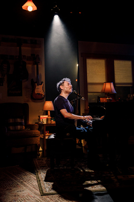 Kahane (I wasn't familiar with him, but I want to know more now) enters, an average-looking fortyish fellow in a comfy cardigan and a black tee. He allows how glad he is to be back in New York, "a beacon of good governance and ethical propriety," he deadpan ad-libs, and we're on his side immediately. His first song for Magnificent Bird, a mellow waltz, begins, "What if that was the last show that I'll ever play?" Lacking context, its meaning isn't easy to grasp, but when he reprises it later, we get it. (It's a trick he'll repeat in Book of Travelers.) His voice is light-ish and, with the help of head tones, rangy; that opening number travels two octaves. In midrange, he sounds to me like Paul Simon. A dozen-plus songs follow, punctuated by frequently engaging palaver. The program is a mixed bag, and you won't always know what Kahane is driving at, or even when a number is over–he's not big on buttons. This much we fathom: Some months before the pandemic began, Kahane, feeling consumed by too much news and too much social media, elected to give up the internet for a year. His wife, with whom he'd just had a daughter, thoroughly supported the decision; maybe the abstinence would help him answer the question, as he writes in an accompanying essay, "How can a person find grace, meaning, and purpose in a world suffused with relentless cruelty?" His specialty seems to be cryptic metaphor, with details whose relevance are not always easy to discern. Sample: "Toward the little piles of broken stones, these days of wandering, blood blindfold armory, I want to hold you close." Got that? Some lyrics repeat and repeat, and it's a relief to return to a more straightforward narrative, as in "Linda and Stuart," Upper East Side friends of his facing advancing age and solitude in those dreadful early pandemic days. What comes between the songs is often witty: "To be clear, I don't think the internet is strictly to blame for the way we find ourselves; the cliquishness of junior high school, sadly, is baked into the human condition." What's more, and how gratifying this is, he takes our literacy for granted; when did you last hear "abattoir," "chimerical," and "vacuous torpor" in rapid succession? He survives the year of internet cold turkey and so does his marriage, which, he admits and takes full responsibility for, was growing a little iffy. Book of Travelers takes a different trip, beginning the morning after the 2016 election. Feeling, again, out of touch with the America that exists beyond the iPhone or computer, Kahane embarked on a 9,000-mile Amtrak journey, making it a point to interact with fellow travelers in eye-to-eye, non-electronic ways. Their stories constitute most of this songbook. The opening number, again, is flummoxing–something about "singing with a stranger from the false world"–but becomes clear, and quite touching, when we hear the story behind it. Then there's Monica, the TV personality on her way to a funeral in Tupelo, boarding the train because even TV stars can't count on safety surviving the Mississippi night if they're driving while Black and female. There's Carol, married to a model train buff, with a sad story to tell. Jason's headed back to Baltimore, where a friend just died. Somewhat surprisingly, given the moment in time, there's no politics to any of these stories, just a lot of all-American acknowledgment and celebration of diversity, like in old movies like The Human Comedy and It's a Big Country. It's not something we get a lot of in these times, and it's welcome. Annie Tippe directs, and this has to be intentional, anonymously; you're never aware of any direction, there's no wall between Kahane and us. There's an unsung hero, Christopher Bowser, the lighting designer: An evening such as this doesn't require elaborate lighting, but Bowser's work is always focused, warm and inviting. And while I'd like to have heard at least one unamplified song, Garth MacAleavey's sound design doesn't overwhelm or distort the words. The music? You won't exactly go out humming, but you will appreciate Kahane's musicianliness, his Schumann-esque filigrees and fondness for waltzes, light jazz, and complicated arpeggios. He even brandishes an electric guitar for the encore, both evenings. You needn't see both, by the way; each is an experience unto itself, though if you choose one I'd recommend Book of Travelers, with its less-cryptic lyrics and slower tempo, something it shares with Amtrak. Which, Kahane reminds us, averages 50 mph, versus 173 mph on a French bullet train; "It's like, should we even call both of these things trains? I mean, like, me, George Clooney, are we both men?" Such self-deprecation is winning, and if you don't love every minute of Magnificent Bird or Book of Travelers, I expect you'll relish the overall journey. More than that, you'll feel like you've made a friend. Magnificent Bird / Book of Travelers Through October 13, 2024 Playwrights Horizons Peter Jay Sharp Theater, 415 West 42nd Street Tickets online and current performance schedule: PlaywrightsHorizons.org