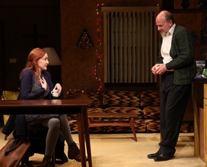The second scene finds a young woman, Mary (the luminous Sarah Street), arriving at the office to see John. It turns out Mary is John's daughter and they haven't seen each other for ten years. Mary's come to tell her father his wife is dying and she wants to see him one more time. This news unleashes a host of Ghost-of-Christmas-Past memories that bring John to an emotional crossroads of self-justification and self-abuse. The third and final scene is set late in the afternoon as John awaits Mary's return to accompany him to the hospital. Mark returns to the office to pick up his pay and he and John enter into a conversation that prompts John to see the Ghost-of-Christmas-Future in Mark's current dilemma with his girlfriend. Thankfully, as bleak as McPherson's story is, there's a ray of hope in Dublin Carol's ending that gives the play a welcome drop of hope in what frequently appears to be a bottomless bottle of misery.