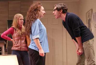 Though this is the central narrative conflict of Bad Jews, it actually covers even more ground, exploring not just how the three Jews we see onstage cope with their own heritage, but also how they relate to the "outsider" in their midst. (Chimo's delivery of an epic rant against Melody's featherweight view of her Delaware upbringing is one for the history books, but everyone else has their moments, too.) The play quickly becomes bigger and more substantial than you might at first anticipate, its lone apartment set (designed by Lauren Halpern) a fitting cage, and its 100-miinute running time more than sufficient for investigating decades of what this family's faith means to it. In investigating that issue, Harmon has been impressively thorough; his writing is alternately hilarious and lacerating, sparing no one in its indictment of the lack of investment so many have in their lives and religion (if any). His refusal to take sides, showing, as but one example, how easy it is for both Daphna and Liam to hurt and be hurt, only enriches the experience. And he's found a compelling interpreter in director Daniel Aukin, whose staging is taut and tight, exactly the claustrophobic atmosphere in which all of this can best unfold. (Though, it must be said, not every stitch of the oppressive intimacy of the considerably closer confines of the Black Box Theatre, where the play premiered last year, has transferred upstairs to the Laura Pels.) The actors are all immensely satisfying, and have only deepened in their portrayals since the play's initial engagement. Ettinger finds a surprisingly lush palette of colors in Jonah's self-imposed neutrality, and builds against the odds to a spectacular final payoff that's as moving as it is shocking. Zegen's natural likability buoys and balances Liam, but the actor lets through no undue sympathy, which makes him a cunning foil for Daphna rather than either a punching bag or a land mine. And Ranson perfectly skirts the line between guileless and clueless as Melody. Still, you can't avoid Daphna or Chimo, who together pack one of the most powerful one-two punches in town. Daphna's determination and the haunting fire Chimo applies to it fuse to form a riveting force of nature that exemplifies theatrical alchemy at its most unexpectedly clever: a demon with the soul of a rabbi. Whether the hell or the heaven will eventually come out on top is something you can't know until the final minutes of Bad Jews, but it ultimately doesn't matter. When a show and a lead performance are this good, everyone's a winner.