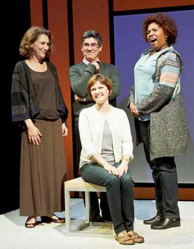 The theme statement of the 90-minute evening is entrenched in the title of Cheryl L. West's entry: "Squeeze, Hold, Release and Now What?" Though those first three verbs refer to a mother's advice on how her daughter, who just gave birth to her own first child, can, uh, keep herself in shape for her husband over the decades to come, they also refer to the most important goals of any parent. "You do squeeze your child," the speaker explains, "and you hold on to them tight, and yes, eventually one day you release them out into the world." Every subsequent play offers some variation on this theme. Brooke Berman's "Next to the Crib" finds a new mother sprawled out on the carpet next to her newborn "sleep terrorist," unwilling to let him out of out of her sight yet. In "My Almost Family," by Luanne Rice, a woman laments her inability to integrate herself into her boyfriend's pre-established household. "Stars and Stripes" is Jessica Goldberg's determined look at how one worried mom supports her son, who joined the army and is currently fighting in Afghanistan. Motherhood Out Loud is at its best when it's not moving in rigidly familiar directions. Five "fugues" fashioned by Michele Lowe, consisting of rapid-fire shreds of storytelling and opening each of the five "chapters" roughly corresponding to a stage in life, are kinetic but not clever, saying very little very quickly. A scene in a park at playtime (Lisa Loomer's "New in the Motherhood") imagines motherhood as a secret-society sisterhood, with flabby results. Marco Pennette has scribed one scene, "If We're Using a Surrogate, How Come I'm the One with Morning Sickness," that, because it's about two gay men and their (unseen) egg donor, is a stretch for inclusion here. There are a couple of successful forays into pure comedyLowe's "Bridal Shop" focuses on a mother fretting that she'll lose her son to his new wife, and Beth Henley's "Report on Motherhood" leaps across generations to vivisect the notion that all women in the past were terrific or even willing mothers themselves. But drama, whether light or heavy, is where most of the stories land, and every instance of it is touchingly written and agreeably performed by the suave four-person cast. Michele Lowe's "Queen Esther" gives Randy Graff an outlet for a superb recounting of how one mom comes to terms with her young son's predilection for cross-dressing one Purim. "Baby Bird" (Theresa Rebeck) provides a nice showcase for actress Mary Bacon to rail against traditional stereotypes as she defends her adopted Chinese daughter's position in her home. Lameece Issaq delivers "Nooha's List," a witty look at coping with menstruation, which Saidah Arrika Ekulona invests with equal parts of warmth and frustration. The sole male cast member, James Lecesne, is tasked with the most affecting monologue: David Cale's "Elizabeth," in which a recently divorced man comes to realize he now has to be parent to his own aging mother. Director Lisa Peterson efficiently manages and presents each individual element, and more important maintains a consistent tone and rhythm that lets the pieces hang together far better onstage than they do on paper. Rachel Hauck's vaguely playroom-and-chalkboard set is colorful, and augmented by pastel-friendly lights (by Christopher Kuhl) and projections (by Jan Hartley), but this is hardly a show that leaves you remembering its visuals. You're far more likely to recall the isolated instances of joy and heartbreak that pepper these works, whether because they're drawn from your own experiences, or because they crystallize for you what your own mother must have gone through. It can be as specific as "Threesome" (Leslie Ayvazian), in which a couple alone after sending their son to college can't get him off their minds, but more likely it's going to be along the lines of "My Baby," Annie Weisman's rumination on how a mother wants her infant daughter to remember her years from now. "However old you are," the young-ish woman in the scene coos to her child, "10, 20, 70... there was still a moment years ago, that I'll never forget. When one second you weren't there, and the next second you were. Life began. And I got to be there." Have you heard this all before? Of course. But Motherhood Out Loud is good and sweet enough to make it pleasurable to hear it all again.