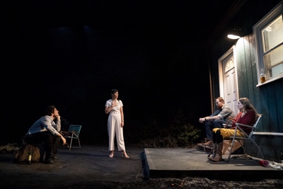 It's a situation Will Arbery strives admirably to correct with Heroes of the Fourth Turning, his new and timely drama at Playwrights Horizons. In a long and thoughtful program note, Arbery explains that he was raised conservative, and still he loves the Wyoming community where he was brought up. But he turned away from it politically, voting for Obama in 2008 and to observers from his past, "My vote had transformed me into them." Thus this largely autobiographical drama, set in a backyard in a Wyoming backwater on a not-that-warm night in August 2017. Everyone on that stage is far-right, and Jesus-loving, and you'd expect a New York audience largely to hate them all. Not the case. It's the tail end of a party, and a reunion for several former students of the local religious university, run by the much-loved Gina (Michele Pawk). She delivered a fiery right-wing speech that afternoon, and they're all there to bow to her all, that is, except her daughter Emily (Julia McDermott), ravaged by Lyme disease and usually bedridden, but she rested up for this night and has a lot to say. Also present: Kevin (John Zdrojeski), up from Oklahoma, a sad-sack religious writer who badly needs a girlfriend, which becomes a not entirely successful running gag; Teresa (Zoë Winters), the smartest and fastest-talking of the bunch, now a blogger in enemy territory, Brooklyn; and Justin (Jeb Kreager), whose backyard this is, mostly mild-mannered and helpful, but he sure can explode and, like everybody else, he has a past. Nothing much happens. Arbery calls his play a "fugue," and that's an apt description, a contrapuntal rendering of philosophies, rooted in Christian devotion, but spreading into far-reaching branches. Emily seems the nicest of the bunch, the most questioning of far-right dogma and the most willing to entertain alternative viewpoints. But she has her boiling point; in fact, Arbery gives her, along with everyone else, something of a nervous breakdown. He also gives everybody at least one big speech. Teresa has three about the Virgin Mary, abortion, and how much the other side hates them. No matter your political persuasion, you have to admit she's an impressive talker, and Winters is a real firecracker in all three. See, unlike Velma von Tussle (Hairspray) or Senator Billboard Rawkins (Finian's), these people aren't idiots. They care about one another, they quote everyone from Aristotle to Flannery O'Connor, and they've arrived at their philosophies through what seems, to them, careful reasoning. Of course, you're bound to disagree with much or all of it. But it's refreshing to hear such viewpoints so ably articulated, and devoid of caricature. "I'm representing their positions with a goal of impartiality," writes Arbery. "You can do what you want with that access." Further, these positions carry a surprise or two: These five aren't very fond of Trump, he's just preferable to That Woman. There's more affection among them for Steve Bannon, but even that's muted. What most of us would consider homophobic and racist outlooks do roam the stage, but it's not like opposing views haven't been explored, and such intolerance is generally entrenched, however shallowly, in what they'd consider the Word of God. Heroes of the Fourth Turning the title refers to a theory of political historical cycles, and Teresa articulates it better than I can does have its structural curiosities. At an intermissionless two hours-plus, it's wordier than it has to be, and several of the conversations go nowhere. Considering that nearly all the characters admit to being drunk as hell, they alternate unconvincingly between inebriated rambling and super-succinct philosophizing. And a last-minute plot twist, introducing a supernatural (godly?) element, is hard to swallow. Production-wise, Laura Jellinek's set isn't much, Isabella Boyd lights it so dimly that you can't always see the actors' reactions, and Sarafina Bush's costumes are so off-the-rack that you barely notice them, which may be a compliment. Justin Ellington's sound design, from the crickets to the cars to a really startling surprise, is excellent. Danya Taymor directs with great pacing, knowing when to let the ideas race forward and when to hold back, and the whole cast is terrific, with Winters and McDermott, in the showiest roles, particularly splendid. The silent opening, with Justin on his back porch just meditating, may lead you to expect a slow evening; don't worry, it isn't. In a climate where extremists of both persuasions are, as Teresa notes, increasingly mutually hostile, Arbery is performing something of a public service. Both sides are in their bubbles, the lack of interaction allows the mutual misunderstandings to fester and multiply, and social media makes the bifurcation so much worse. Shouldn't we make an effort to pop those bubbles, a little? This liberal tries to watch five minutes of Fox News a week, which is about as much as I can take. Heroes of the Fourth Turning is a step toward increasing the dialogue oh, so that's what that side thinks, and why they think it. Thank you, Mr. Arbery. And playwrights of the right, if you're out there, let this be an incentive: With characters and arguments this compelling, you may actually get produced.