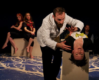 Meet Lauren (Jessica Ranville), who at the outset swears she will be telling her story "as truthfully as I know how." In this case, "truth" should be thought of as a very flexible concept as Lauren narrates her story from the time of her childhood struggles with epilepsy to her later sexual exploits and experiences as a gifted writer. The two-hour production, on view at the Interart Theatre, is divided in half, just like the platform stage that has been simply but ingeniously designed by Neal Wilkinson to representamong other thingsthe two hemispheres of Lauren's brain, surgically split in order to control her epileptic seizures. Much of the first half of the play focuses on her neurological disorder. But it also deals with the rocky relationship with her mother, who is both distancing and overbearing. It is from her motherwho casually changes her own biography as it suits her purposesthat Lauren has learned "what you wish is every bit as real as what you are," a philosophy she embraces with enthusiasm. The second half of the play depicts Lauren's gradual disintegration, through her unbridled sexual relationship with an older author she connects with at a writer's retreat, her interactions with members of the medical community, and her spontaneous participation with an Alcoholics Anonymous group (although she is not a drinker). Since Lauren is truly an unreliable narrator of her own life story, it is left entirely in our hands to analyze her motivation and her psychological state. Under Jessica Burr's well-wrought and well-choreographed direction, Lying is an actor's tour de force. Ms. Ranville is onstage virtually the entire time and is called upon to make the journey from a clever and precocious child to a young woman on the verge of a nervous breakdown. The rest of the cast members (Charise Greene, Nathan Richard Wagner, Sonia Villani, and Rich Brown) play multiple and frequently-changing roles, and they display the inventive nimbleness of a highly skilled improvisational troupe. At times, three of them will simultaneously perform as Lauren's mother, or portray her classmates, or nuns (Lauren is Jewish, but nuns, and even Jesus, become integral to her story). There is also a great deal of physical strength involved, as the cast members heave around removable sections of the platform stage, or simulate sex acts while doing backward push-ups, or hang from the rafters while reciting their lines. The work of Blessed Unrest is always intelligent, exciting, and experimental, yet always well rehearsed so that the results are highly polished and professional. With Lying, the company can take pride in adding another solid work to its repertoire.