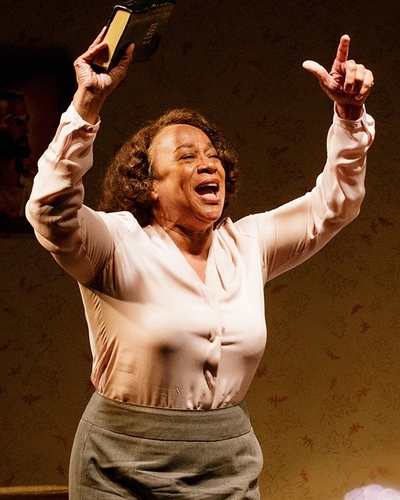 The apex of this, but the nadir of the play, occurs early in the second act, when Calvin and Delores are variously tormented by a cacophony of these voicesonly some of whom are coming from people we can obviously pinpoint as being dead. And let's not dwell on the upright piano, a crowning feature of James Noone's handsome and cozy two-level set, that plays itselfanother messy instance of Porter underlining far too baldly the spirits that are controlling these lives. Porter is simply trying to do too much too broadly, and without earningor at least justifyingthe myriad devices he deploys to get there. The most moving moments in the play are those that are stripped of the pretense: the cancer-riddled Eva confessing to an affair with the preacher, knowing the moral outrage with which Maxine is likely to explode; a repentant Calvin, many years later, trying to convince his mother she can no longer care for herself. But even these are muted by their surroundings, leaving them oases of clarity amid the confusions of a universe that's thrown up its hands at the prospect of trying to make sense of it all. If not for Merkerson, you'd be hard-pressed not to give up to. But she anchors this reality with a performance of gorgeous sensitivity, guiding Maxine along a path from judgmental bystander to independent woman to dependent mother. Every setback that befalls Maxine seems to etch a new line on Merkerson's face, and we feel, right alongside her, the tribulations of trying to believe in God and rational familial order when everything is trying to pull her in a different direction. Her disquiet, rage, and eventual submission to fate give her Maxine an epic and tragic, but ultimately satisfying, trajectory that energizes Merkerson, us, and the play. Unfortunately, no one else quite matches her; Powell doesn't let us see how the abused Calvin became the self-assured man we encounter later, a necessary transformation (especially given that Porter elides in the script), and Irving's brash, smirking cynicism doesn't give Tonya much of anywhere to go. Graham, Morrow, Washington, and White are all fine in their roles, but can't overcome how quickly their characters appear and disappear from time and memory. That undoubtedly plays into Porter's point that it's difficult, if not altogether impossible, to understand all the experiences that make us who we are, and that we often have to settle for one as the most crucial center point for our being. In While I Yet Live, that's Maxine, and Merkerson is more than up to the challenge of portraying her as the dominant force in the chronicle. But she has to compete so much with a play that wants to be about a dozen other things as well that she may suffer the worst fate of all when you're forced to wonder whether she's merely another figment of your imagination.