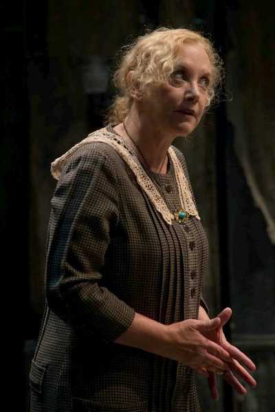 Smith-Cameron positively dazzles as the matriarch of the Boyle family tasked with keeping her son Johnny (Ed Malone), daughter Mary (Mary Mallen), and husband "Captain" Jack (the paycock of the title, played by Ciarán O'Reilly), in check. The actress wields a no-nonsense sentimentality that's a tight fit for the reality-drenched woman who's always on the brink of drowning in the facts of her family, from her husband's wasteful ways hanging out with the degenerate Joxer Daly (John Keating); her daughter's romance with the class-straddling Charlie Bentham (James Russell), who brings good and bad news in equal measure; and Johnny's struggles to live without the arm he recently lost and against the pressure to resume the fighting that scarred him in the first place. At each juncture, you see Juno striving to make the best of the situations around her, and Smith-Cameron gliding effortlessly from shrugging acceptance of her lot to hope for redemption to outright despondency that may be tempered only by soldiering on still further. Even when things turn happy, in an oh-so-brief sing-along that reinforces it takes a lot more than internecine conflicts to squelch the Irish soul, Juno is determined to endure to the end at any costand when she finishes her own simple duet with her daughter, it may as well be the crowning achievement of her long, distressed life. It's a tiny moment, to be sure, but it's in such places that Smith-Cameron constructs the real essence of Juno, the foundation that support the big choices, the bigger outbursts, and the biggest examples of heroism later. And yet she does this without ever being oversized or pushing her costars into the wings. Everything Smith-Cameron does is sensibly considered and naturalistically rendered, so much so in fact that her performance doesn't take on the epic or history-making proportions that are often attached to the role. But it's unflinchingly, unfailingly real throughout, and is practically the perfect fit for the play as situated within the tiny theater that houses it.