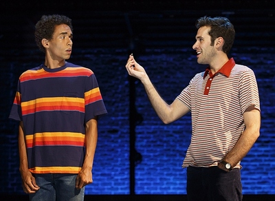 Such is the case with The Fortress of Solitude, the new musical at The Public Theater based on Jonathan Lethem's 2003 novel of the same title. It has all the makings of a sure thing: a powerful story that fuses race relations, contemporary politics, and fantasy; a book by an accomplished playwright (Itamar Moses); a score by a composer well known for doing off-kilter extremely well (Michael Friedman); a talented director (Daniel Aukin); and even a first-rate cast with one hot young rising name (Adam Chanler-Berat), an established star (André De Shields), and just about every other type of solid performer in between. What it lacks, and quite forcefully, is the spark of necessity and extra-strong devotion to artistry that might link the pieces together. The opening scene seems promising, recreating with a jolt the unpredictable panoply of Brooklyn in the mid 1970s. We slowly focus on the white Dylan Ebdus (Chanler-Berat), an almost-teenager, and the black Mingus Rude (Kyle Beltran), the friend he meets almost by accident. Beyond this, the funk (the musical kind, that is) of the streets explodes into its populace, with each of a dozen different denizens doing dances (choreographed with careful precision by Camille A. Brown) and singing their own strains, but somehow blending into flawless harmony. Add in the slick, ghostly presence of a suave Motown-style singing group melting into this, and you have a shimmering portrait of a time, place, and people as only the theatre could paint it.