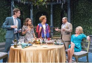 The good news first. That would be Mary Testa as Mrs. Dragonetti, a (what else?) dragon of a mother who looks a bit like former First Lady Barbara Bush (whom Ms. Testa has portrayed before) and charges around the stage roaring like an unfettered Ethel Merman. She is also the only one who is able to capture the crazy spirit and exquisite comic timing needed to pull off the steady stream of one-liners that serve as the dialog for large chunks of the play. It's not so much what she says; it's how she says it, with that nobody-better-mess-with-me tone that makes you perk up each time she appears and slump a little whenever she exits. No one else comes close. Not Jason Alexander, who plays her son Barry, a meh lawyer and a schlub of a man who undoubtedly will remind you of the actor's best-known character, George Costanza from Seinfeld. And not Sherie Rene Scott, who plays Atalanta Lagana, a wealthy serial widow who has long had the hots for Barry (lots of jokes about calling out his name during sex, no matter whom she is with). A sex comedy doesn't need much of a plot, but it does need something to hang its tale on (even the play's title is just another excuse for a running gag). The thread by which the storyline hangs kicks in when Atalanta shows up at Barry's office, wanting him to settle the estate of her latest late husband. None of that truly matters, however. What does matter is the situation (as in "situation comedy"). Barry is married to a much younger woman, Patty (Aimee Carrero), and the "grieving widow" Atalanta has taken up with a boy toy, Freddie (Pico Alexander), who is Patty's ex-boyfriend. Meanwhile, there is Mrs. Dragonetti who lives with her son and daughter-in-law, and whose raison d'ĂȘtre is to insert her sharp tongue into everyone else's business. As the cast members, wearing William Ivey Long's snazzy costumes, cavort around John Lee Beatty's lovely and extensive set (Barry's office and home, and Atalanta's upscale house), it won't take you five minutes to figure out who will end up with whom. It's basically the stuff of classic sex farce. But John Patrick Shanley's considerable strengths as a playwright do not include a great facility for the construction of farce. Instead, he relies on punch line after punch line after punch line. It's as though he had been collecting jokes on index cards for years and has tried to wrap the play around them all. Certainly, some lines will make you laugh, especially when they come out of Mary Testa's mouth. But there are also many whose sell-by date expired long ago, including references to occupied France, Spartacus, Darth Vader, and Goldfinger. Even a string of forced Donald Trump jokes seem stale. Occasionally there are suggestions that both Atalanta and Barry long for something more than the lives they have fallen into, what Barry refers to as "the indignity of survival." Perhaps a better director might have been able to help Mr. Shanley build on those moments of self-reflection and trim away the parts that drag the play down. Unfortunately, the director and the playwright are one and the same, and they seem to have agreed on everything.