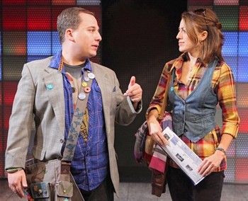Unfortunately, the negative qualities of the word apply as well. Unerringly pleasing as each individual number might be, all 20 of them taken together do not reveal a score or composer of much adventurous intent. All the songs, whether set on the streets, on a Union Square rooftop, or in the Metropolitan Museum of Art, canter at exactly the same pace, with exactly the same lilts in exactly the same places. The lyrics always rhyme, and well, but always and only as you expect them to. The tunes bounce ingratiatingly, but always at a standardized height, no matter if a character is singing about the tragic end of a once-in-a-lifetime love affair, a viciously passive breakup, or just cleaning up an apartment. So deciding what to make of Gwon's amiably ambling show, which has been stylishly directed by Marc Bruni, is not easy. It's hardly an amateur effort, and in telling the (barely) interlocking stories of two New York couples - the just-moving-in-together Jason and Claire (Hunter Foster and Lisa Brescia) and the met-by-chance just-friends-because-he's-gay Warren and Deb (Jared Gertner and Kate Wetherhead) - Gwon makes plenty of wistfully nice statements about the importance and difficulty of establishing deep connections in the city. Jason and Claire bicker because they're not used to living with someone else, and Warren and Deb argue because he's always focusing on the bigger picture and she's all about the details. It's a fine representation of four highly identifiable archetypes that make up the backbone (and the frustration) of everyday New York life.