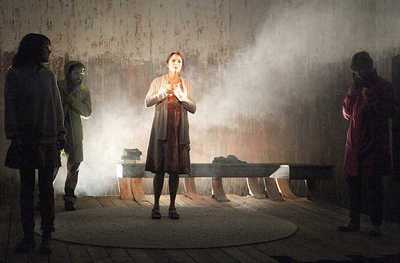 The result is that each of the 80 minutes that comprise the show's running time is committed to telling you that you don't, and can't, know something. This foists you into the play's world in an unexpected, but hardly unwelcome way, letting you experience exactly the questions the people onstage do, in real time. Whether events are unfolding linearly or being invoked from some tortured memory, you never doubt that the stunned, almost immobile responses you're witnessing are exactly what they should be. That's good from the standpoint that they could not be more appropriate to the subject matter. The story involves nothing more than an older woman (Karen Allen) receiving a visit from a friend (Pamela Shaw) that kindles a recollection of long ago: when her husband, Asle (McCaleb Burnett) took out his boat just as she and her friend (the younger versions are played by Samantha Soule and Maren Bush, respectively) were beginning an afternoon together, and remained on the water just as a storm devastated the seaside where the couple lived. Exactly what happens, or doesn't, or merely what we think happens (or doesn't), during this span of time is the entire thrust of the piece, and watching events develop (or not) is a pleasure with these performers at the helm. Allen, best known as a screen actress, is remarkable in her role, portraying with an unsettling serenity the older woman's hollowed-out soul. Even when merely standing and looking out at the audience, which she does frequently (it's how the woman watches the water), she conveys an infinite terror-touched wonder, a vibrant, even anxious, inner being locked within absolute stillness. Soule matches her point for point as the decades-earlier version, and demonstrates exactly why her older self came to be. You see the carefree optimism of youth melt and become calcified and cynical, with each new occurrence permanently scarring her. Shaw and Bush do not quite match the dynamism of their cast mates, but are fine in their own right, and just as detailed at showing how friendships and emotions evolve. Burnett projects a heady distance as Asle that leaves you curious about many things about him, and his marriage. Because Carlo Albán occupies the most corporeal role as the younger friend's husband, he has fewer opportunities than the others to communicate a heightened sense of place and personality, but he makes the most of what he's given. Director Sarah Cameron Sunde has done much the same thing with A Summer Day as a whole, maximizing every moment, regardless of whether or not it's fueled by dialogue. The fraught opening minute, for example, is utterly silent, with Allen and Shaw nonetheless articulating their entire relationship simply by how they stand, sit, and fail to look at each other. John McDermott's simple house set is adorned with hardly more than a couple of benches, but the way the floorboards bend up to greet them and the way the paint fades as the rear wall vanishes into the flies perfectly highlight the illusory nature of this place and time. Nicole Pearce's lighting expertly complements it all, transitioning slowly but breathlessly from light-infused hope to darkness-choked reality. The only thing missing, sadly, is a point. Exploring feelings this way is theatrically soundeven advisablebut it must be constructed on something. As richly rendered as everything is, substance is almost nonexistent. You must accept on faith that everyone's struggle here is somehow significant, because Fosse never makes a convincing argument. Fosse takes you on a powerful journey, no doubt, but you end up more or less back where you started, without barely even a tangible souvenir. You may desperately want something to take away besides an appreciation of the acting and stagecraft, but there's nothing to grab onto. That makes A Summer Day, which is in no way difficult to sit through, extremely challenging to love once you've seen how it shakes out. Uncertaintyof who we are, why we're here, and what (if anything) it all meansis an inescapable part of life. But without a grounding force behind it, its impact on both your mind and your heart is as temporary as a wave crashing against the shore.