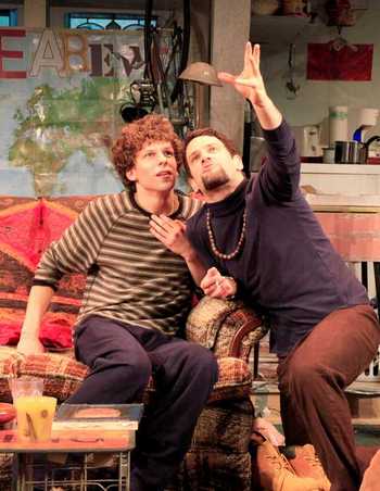 Director Kip Fagan does everything he can to elevate the script, but he has almost no luck squeezing juice from what's little more than a Three's Companylike collection of exits, entrances, and unnecessary misunderstandings. Eisenberg is predictably good as Edgar, marshaling his good-natured naïveté to considerable effect as a surface-skimming observer of human nature, and Bartha brings just the right air of fractured superiority to what could be a wobbly buddy part. Mana and Auberjonois hit their marks but are a bit stiff and empty in their roles, though these are understandable qualities given how little time Eisenberg spent fleshing out their characters. (Of course, if he did that, the story could be told in 10 minutes.) The only interesting thing about this show as a piece of writing is Edgar's background. A stereotypically accepting college student, he makes a grand show of empathizing with others despite being intensely driven by his own narrow preconceptions. He's constructed his entire personality around an accidental trip he made to Cambodia a couple of years earlier, and believes that this entitles him to an "informed" opinion on everyone else's situation regardless of where the truth lies. The play's heartiest laughs come from Edgar's attempts to coax details from Asuncion about her life for an article he plans to write, with him begging her to offer withering commentary on Pol Pot and the Khmer Rouge. That she's from the Philippines is immaterial. Cambodia is his sole frame of reference, and that makes him better than her; Vinny, on the other hand, is a Black Studies graduate who never flaunts his more robust knowledge of African tribes and customs. Is there a statement here about well-off liberals' myopia in the face of real or imagined suffering, and their belief that they can remedy even problems that don't need solving? Perhaps. But if Asuncion teaches anything, it's that it's seldom wise to assume there's more to any situation when all the evidence points to there being less. Applied to Eisenberg's play, that means you get a moderately satisfying comedic appetizer, but nothing that sticks to your ribs.