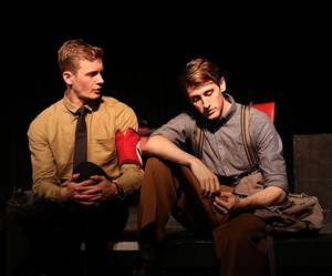 Take the first exchange, between Rolfe Gruber (Logan Sutherland), a handsome young Aryan-in-the-making, and the swastika-armband-wearing Herr Zeller (Dominic Comperatore), both of whom were in the earlier work. This is about what you'd expect, but it's still funny. (It's also the most obvious gagthey have to lure you in slowly, after allthough they get tougher.) Zeller: I am under the impression that you have developed a what... friendship with one of the Von Trapp daughters. Is that true? Rolfe: Yes, yes. I have. With the eldest daughter. Liesl. Zeller: How old is she? Rolfe: She is sixteen. Going on seventeen. Zeller: And you are Rolfe: I am seventeen. Going on eighteen. If you don't get that, or if it didn't make you laugh, you should stop reading now and you certainly shouldn't buy a ticket. There's more to the show, in theory if not in execution (pun not intended). Bergh has tried fervently to escape the shackles of the source, but they don't release easily. Especially when the story is one that's rather less credible as being set with these people in, as the program states, Austria in "the last golden days of the 1930s," than in America of more recent vintage. Bergh has plenty of points to make, but they have trouble landing amid all the comedic landmines. The plot turns, in fact, on Rolfe not only not being in love with Liesl Von Trapp, but instead hot and heavy for the avowed (maybe-quasi, maybe-ex) communist, Johan Schmidt (Alex J. Gould), the nephew of the Von Trapps' housekeeper; other jokes strongly imply that Friedrich, the oldest the Von Trapp children, is gay as well. These bits are presumably inspired by the performances of, respectively, Daniel Truhitte and Nicholas Hammond in the movie, but play more as gratuitous slashfic than deep insight into Anschluss-era European politics. Bergh is attempting to expand the field of view to show how some suffered even more than the Von Trapp family did, which is undeniably true, and indeed Rolfe and those around him (the play's title is, shall we say, not inaccurate) move in quite different, less-complimentary circles. But one of the things that's always made The Sound of Music so compelling in that way is that the Nazis remain, largely, a threat poking around the edges of our consciousness only to wreak pure havoc in the final scenesproof that the Von Trapps, as insulated from the threat as anyone could be, could also become victims. Cabaret, as but one example, rides multiple layers of symbolism to another, starker viewpoint that is, in many ways, even more terrifying. Working so far behind the scenes, Bergh reduces Zeller and his unseen compatriots as irate paper-pushersoccupying bureaucracy was, undoubtedly, one of the Nazis' chief tactics, but it falls short of riveting drama when depicted onstage. If you worship the movie (which is far more the basis for this than the stage musical), maybe you can endure the static conversations between Zeller, the butler Franz (Jay Patterson), and Frau Schmidt (Polly Adams) that fill most of the 90-minute playtime, as they muse on significance, strategy, and, occasionally, that problematic governess of the Captain's. Otherwise, it may feel like a lot of filler. This is not because of the actors, who are competent and professional (if never exciting) across the board, or director Abigail Zealey Bess, who's staged things with the most kitchen-sink fidelity possible in this format. There's just nowhere for them to go with the material. The gay scenes work better, mostly because of the charm and chemistry that Gould and particularly Sullivan display, but much of their dialogue is pat and familiar to the genre. ("I have a girlfriend," Rolfe protests at one point; "Who, after you kissed her, instead of going further, you ran away," Johan retorts. Which isn't to say it can be entertaining as well. "She smells nice," Rolfe says of Liesl at one point. "You know, clean and... and bright. Like edelweiss. And... and she's always happy to see me." And the intimationa surprisingly major plot pointthat Rolfe was a good enough singer to infiltrate and perhaps win the Salzburg Music Festival is good for a chuckle, too. One suspects, though, chuckles aren't the desired outcome, and that Bergh would prefer we came away with a deeper understanding of the sky-high stakes behind a property that's often derided as saccharine. Well, okay, but that would be easier if the play itself were a more serious and original excavation of these concepts, rather than so frequently behaving as a delivery device for crazy call-outs. For a story-behind-the-story, the absent characters we already knowand love more than theseremain disquietingly front and center. Maybe The Radicalization of Rolfe just isn't radical enough?