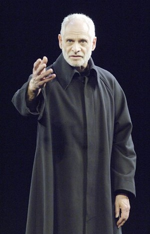 Marie-Hélène Estienne adapted it from one section of the Fyodor Dostoyevsky novel The Brothers Karamazov, not exactly popular reading. Its running time is a scant 55 minutes. The set consists of but a single platform, barely raised off the floor, and one undistinguished chair. There are only two people in its cast - both men, neither of whom (Bruce Myers and Jake M. Smith) you've probably heard of - and only one of them speaks. You can't push much further, though, until your objections run out: The impact of the next element counteracts those that came before. That would be the production's director, Peter Brook, who here, as in many of his other works, has a knack for making an idea too small for a closet feel too big for a stage. He expands Dostoyevsky's parable about Jesus Christ's return to Earth during the Spanish Inquisition to full proscenium width by underscoring every conceivable instant of ritual. When the actors enter or leave the stage, they do so in a methodical, stone-faced regimen. Jesus (Smith) sits, frozen and facing upstage, for most of the play, as if he too is paying unwilling reverence to a holy force. When the Inquisitor (Myers) challenges him, he does so as much with that chair as with his words, dragging it now and then a few feet closer as though following a process outlined in a well-worn torture manual. This effusive sense of methodology could not be more proper for a work about one of history's great instances of the absolute corruption of absolute power. Of course, in The Brothers Karamazov, the scene serves a very different purpose and thus can't be taken at face value. But it works well, too, as a standalone, since hypocrisy has never been a subject confined solely to books. The organization thriving on instilling despair and fear but passing it off as hope and enlightenment is here the Church, but it could as easily be an organization with a corrupt leadership, a political campaign, or even a full government. Brook and Estienne leave every option open, and thus impress without insulting and move without mawkishness. Even their choice of actors was keen. While any actor could probably play the wordless Jesus, Smith stares with a firebeam intensity that mixes exactly the love and loathing you'd expect of Jesus on trial; his every motion, however small, is packed with meaning. Myers is as avuncular as he is devious, his Inquisitor is an elderly demon with a close-cut beard and a bewitching smile who's stolen your soul before you even know it's missing. In other words, he's an ideal representative of the Church that was more or less the same thing. But he and Brook don't confine the sin to the stage. As the Inquisitor torments Jesus, he'll occasionally turn his head to the audience or even walk downstage to speak directly, thus implicating you in his plot to make the Church more his plaything than the vehicle for change its creator envisioned. He's all but challenging you on that old saying that evil can flourish when good people do nothing - for that's exactly how he got where he is, and how he hopes to remain. The Grand Inquisitor theorizes, however, that even such deeply rooted cancers can be removed with the proper treatment: All is not lost, even when those in charge would have you believe nothing else. That makes this show, so seemingly insubstantial, one of the most inspiring and uplifting offerings currently to be seen in New York.