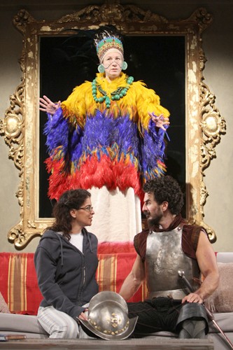 Jim Knable's half-insufferable half-comedy, which MCC Theater just opened at the Lucille Lortel Theatre, attempts to address the debilitating nature of contemporary ennui inspired by America's melting-pot mindset and flighty flaunting of romance. But in trying to make its points in a language at once magical, sparkling, and unpredictable, Spain too often lands in the ear and on the heart like the theatrical equivalent of Pig Latin. Given much of what floods the stage before intermission, an ifferentday anguagelay might actually not be a bad idea. Repetitive, violent, and flat-out unfunny, the first act of Spain is one of the ugliest and most tedious I've seen in years. Little more than an hour-long ramble between Barbara (Annabella Sciorra), a recently separated office drone longing to visit Spain, and the sex- and destruction-obsessed Conquistador (Michael Aronov) she's apparently conjured up from her mind, the play struggles to show that modern disaffection and the 16th-century conquering spirit are close kin. The end of the first act finds Barbara, at the Conquistador's urging, triumphantly running through her husband (Erik Jensen) and an offstage policeman with a bloody Spanish longsword. Good times. Were it not for the relative restraint and polished comedy skills of Veanne Cox as Barbara's friend Diversion (in the most blatant case of symbolism run rampant) and Lisa Kron as a mysterious Mayan ancient, all this unbridled and uninteresting anger would be unbearable. As it is, it's a close call: One character describes the feeling of all this as "participating in a ritualistic experiment," which Sciorra's painfully mannered line readings, Aronov's stereotypical libidinous growling, and Jeremy Dobrish's slapdash, anything-for-a-laugh direction make into the first act's sole moment of recognizable truth. The second act, however, is a different story. Once Barbara must face the consequences for her actions, Knable is forced to focus on his characters' humanity instead of their oh-so-precious peccadilloes. That's when the play becomes exactly the enchanting, fantastical romp through the psyche it was going for all along - it's hard not to get swept away in the dreams of Barbara and everyone she escorts into her imagination. The exigencies of life have robbed them of their reasons to live it, but they learn it's never too late to reclaim their purpose. Everyone treads more lightly, from Sciorra shedding Barbara's uneasy ice queen façade for a personality bubbling over with possibilities to set designer Beowulf Boritt's embracing more fanciful (and less realistic) visions straight out of a children's storybook. Dobrish, too, makes everyone abandon their dishonest, over-the-top games and insists they play people nursing their wounded emotions the best ways they know how. The play is considerably better for it, and even becomes genuinely moving - in isolated moments - before it ends. It's clear that Knable intends the first act as a warning against acting on our most basic impulses, whether vivisecting lovers who scorn us or going on an expensive vacation, and that he considers the early depths of darkness necessary to bestow the proper light of understanding later on. But the Grand Canyon-sized rift between the first and second acts in tone and style has just the opposite effect on Spain: A "real" world so blatantly disconnected from our own offers no inherent reason to trust the authenticity of the coming redemption, even when (or perhaps especially when) that turnaround proves to be well worth the wait.