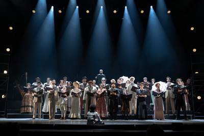 Even lightly staged, Ragtime, with music by Stephen Flaherty, lyrics by Lynn Ahrens, and book by Terrence McNally, is big (cast of 39). It is loud (so much so, that twice my smart watch sent me a message warning me about exposure to too many decibels). And it is both grand and flawed, sort of like the early 20th century America it tries to capture in its adaptation from E. L. Doctorow's equally sprawling novel of the same title. To begin with, it's hard to imagine William David Brohn's Tony-winning orchestrations sounding any more rousing than they are in the hands of music director James Moore and the 27-piece orchestra. And thanks to Kai Harada's sound design, every note (as well as every lyric) fills the house with a clarity that any Broadway theater would do well to emulate. And then there's the cast, about which the operant word is WOW! There is not a weak link among them, and so many of the performances are 24K gold. Let's start at the top and say that Joshua Henry at the height of his powers is giving an extraordinarily rich performance as Coalhouse Walker, full of love, pride, a naïve but determined belief in the American system of justice, and a sad and burning sense of loss. With every spoken word, every sung note, every phrase of lyric, Henry gives us a thoroughly fleshed-out portrait of a Black American living in this country a mere 40 years after slavery was abolished. And the love of Coalhouse's life, Sarah, is being given a beautiful heart-on-her-sleeves portrayal by Nichelle Lewis. Together and individually, they own the stage, and the show itself feels a little bit bereft when they are not around. The story of Coalhouse and Sarah is worthy of an opera, and Ragtime itself at times to seem to aspire to that form, filled as it is with lush numbers that, for all their soaring qualities, rise above what we generally might think of "anthemic songs," in the manner of, say, Les Misérables. A prime example here is the Act II opening, "Coalhouse's Soliloquy," which blows us out of the water but without the bombast we associate with blowing off the roof, such as occurs in the Act I closing number, "Till We Reach That Day," led by a crystal-and-soul shattering Tiffany Mann as Sarah's Friend.