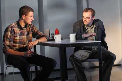 That this play, which premiered last year at the Gift Theatre in Chicago, can swing so completely from rote to riveting represents one of the biggest surprises and successes of the Roundabout Underground program of which it's part. Since Roundabout Theatre Company launched the series in 2007 to give new and emerging writers a high-class outlet, it's produced a couple of outstanding shows and a couple of duds, but all have been fascinating. Hinderaker's certainly is that, but it also ranks as the most daring to date, due in no small part to its author's masterful facility with showing how the extraordinary derives from the ordinary. The ordinary here starts with the premise, which tells you everything and nothing about where Hinderaker is going: "A man takes a job editing suicide notes so he can save his customers' lives." If already your mind is filling with visions of a tense initial interview, scenes depicting the drudgery of the life-or-death work, and confrontations between the caring and the (apparently) heartless, that's exactly what you get. The first scene finds Jason (Gabriel Ebert), a former Hallmark writer who left under mysterious circumstances, at the conclusion of his interview with Scott (Toby Leonard Moore), the founder and president of Legacy Letters. Scott isn't sure Jason's right for the job, so can Jason convince him? Just let him at this one note written by Perry (Corey Hawkins), and improve it with two quick flicks of his pen, and... I know, I know. And things don't much improve when Jason gets home (after scoring the job, of course) and has a vaporous conversation with his brother, Tommy (Jake O'Connor) that instantly starts you wondering whether he's dead and the inspiration for Jason's sudden career shift. (He is.) Jason departs immediately for his night gig, which he cares about a great deal more. There's some reference to working on phones, so you're positive it must be something like answering phones at a suicide hotline. (It is.) Don't worry: These are not spoilers. Hinderaker places all of his cards on the table by the third scene or so, when Jason meets his first client, Norm (James McMenamin), and is faced with putting his beliefswhatever they areto the test. What follows is a simple series of variations and explorations on already established plot points, with no worthwhile new information introduced within the final hour or so of the 85-minute running time. Yet the play is never remotely undernourished. Hinderaker, director Jonathan Berry, and the superb cast inspect each character and event as with an electron microscope, and present five lives that are astoundingly complex and full. (A sixth actor, Mike DiSalvo, fills what is essentially a walk-on role as a cop who keeps his eye on the office's operations.) You become so involved in their dreams, fears, and flaws that even their most mundane words and actions take on towering significance; before long, you're convinced that watching them arguing over the menu at an Italian restaurant would be captivating. Take, for example, the layers of irony and subtext coursing through a flashback scene, in which Jason agonizes over Tommy's last night alive. We know by that point that the brothers' parents died young, and Jason was Tommy's sole means of support through much of school and college. But seeing how they interacted, what they said to each other, what they didn't, and what they didn't have to, changes the scope of everything else. O'Connor does some of his best work ever here, thrusting an unshakable facade over anguish we (and, to his shame, Jason) cannot imagine, and providing a haunting glimpse at what the final moments of existence feel like from the inside out.
