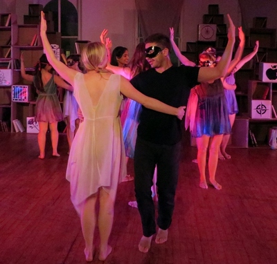 Entering the theater, the audience encounters what seems to be a group of middle school students in their nightclothes gathered in the school library for a PTA-sponsored pajama party. The shelves contain a number of books, and spread around the room are illustrations from fairy tales. Some of the children are gathered in cliques, while others are sitting alone and apart from their peers. One has even taken to dancing around the room by herself, oblivious to the others. As it turns out, however, the performers are actually supposed to be fairy tale princesses and princes. When the show itself begins, we are introduced to Scheharazade (Livie Casto), who spends the rest of the 75-minute production introducing us to each of the 13 princesses, who take turns—one after the other—singing a song. Occasionally, one or more of the show's four non-singing princes enters to participate in a bit of dancing, choreographed by the show's director Megan Mekjian. But that's about it. Much of the music is reminiscent of the kinds of melodies that would have been sung by Judy Collins or Joan Baez back in the day. There also are a couple of sultry torch songs, a bit of rockabilly, and a sweet lullaby included in the mix. Madeline Fansler as the Twelfth Dancing Princess and Kristen Kelleher as the guitar-strumming Traveling Princess stand out among the singers, with the latter leading the company in the rousing "World's End," the best number of the night. It is possible that if Royal Fables were to be presented as a straightforward concert, it might serve to showcase both the composer and the singers. Sadly, however, devoid of plot, theme, or connections among the stories, the production could be titled "Eighteen Characters in Search of an Author."