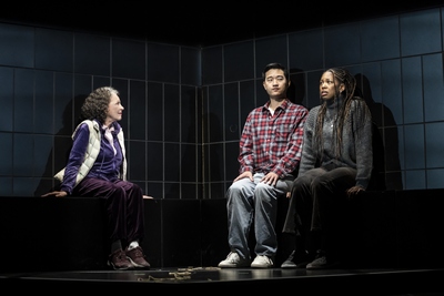 Lavin plays Callan, or, as the character-by-numbers script would have it, #2. If you're a New Yorker, you've met this woman before: She's the lady of a certain age gabbing with her friend on the uptown M104, or insisting on the end piece at the deli counter at Zabar's. Callan fancies herself an actor, and is enrolled in a pretentious acting class while she prepares to audition, improbably, for Dorothy in The Wizard of Oz. But the money's tight. So when she sees a green flyer (it's plastered all over the Roundabout lobby) offering $20 just to call a stranger and have a conversation with him, she phones its author, #1 (Daniel K. Isaac). And thus begins a strange, mercenary, but fascinating friendship. Callan will never stop offering #1 comfort and support. Yet she'll never stop shaking him down for more money. And Lavin's timing, accent, physicality (watch her do an acting exercise, transitioning from "walk like a lion" to "walk like a tiger"), and off-key attempts at "Over the Rainbow" are all keepers. She's been away too long. #1, young and seemingly vital, has been experiencing muscular difficulties and can't get anything more out of his doctor than, "It's bad." His late brother went through something similar, and #1 can't bear to tell his sister Polly, or #3 (a winning Marinda Anderson), about his rapidly worsening condition. He can't even say the word "sick," the thought of it is that debilitating. So he hires Callan to practice the difficult conversation and eventually to break the news to Polly and his friends. It's all happening in a curious environment. Yes, it's New York, but what time are we in? The clothes and attitudes seem contemporary (Michael Krass and Alicia Austin did the costumes), but the phones are all landlines, and there's no mention of cell phones or the internet. Further, Diaz has stocked this New York with some wild metaphorical improbabilities. It seems giant birds have been menacing the populace, swooping down and carrying loved ones away in their beaks. This metaphor is easy enough: The birds are death. But what are we to make of the wild dogs racing through the park? Or the hay? #1 keeps coughing it up and also seems to be partially made of it. Diaz' script is rife with Wizard of Oz references, and maybe this has something to do with the Scarecrow, but it's a head-scratcher, among several. Then there's the narration. An offstage voice keeps intoning it, revealing #1's thoughts, and most of it is redundant: Why do we need "You lie on the floor" when we can see #1 lying on the floor? We eventually meet this offstage narrator, #5 (Dario Ladani Sanchez), and it turns out there's a reason for his presence, but you have to wait for almost the whole play to find out what that reason is. I haven't mentioned #4, Nate Miller, sort of an all-purpose white guy in several roles, most hilariously Roscoe, a burger-joint waiter who can't stop crying. Or the odd set, by the design collective dots, an all-purpose tiled black room that can be a shower, an actor's studio, #1's apartment, anything it wants. Eventually it turns into something else altogether, quite spectacularly: #1 (here's another Oz parallel) has been saying "I want to go home," meaning his Midwest roots, and Diaz gets him there, for a bittersweet finale. The dialogue is clipped, short, to-the-point sentences, and Diaz knows how to wring a laugh out of the most appalling circumstances. Also how to make us care: #1's gradually revealed character–he's gay, his boyfriend left, his family is loving but demanding–is persuasive and touching, and graced by Isaac's everyman appeal. Sam Pinkleton directs, unobtrusively; mostly he stands back and lets Diaz and the gifted cast show us what they've got, which is plenty. Diaz' main point seems to be that, well, you will get sick, and fate is random, and the body a precious resource that time sooner or later will ravage. And that when that happens, there are palliatives, but the most valuable may be human companionship; #1's insistence that "I can get through this" turns into a liability, and Callan's support becomes indispensable to him, even as she taps him for another twenty. This is one of the stranger relationships I've seen onstage in a while, and quirky doesn't begin to describe the amalgam of comedy, misery, discomfort, far-out fantasy, and sheer eccentricity in You Will Get Sick. Let's welcome a fresh new viewpoint to the theater. And let's rejoice that Linda Lavin is around to give it a voice. You Will Get Sick