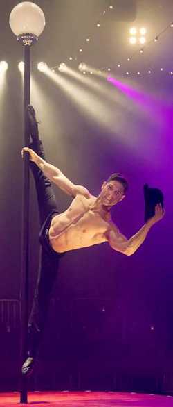 Though it draws heavily from European-style burlesque vaudevilleand thus particularly reminiscent of the various Spiegel outingsthere's no escaping La Soirée's three-ring underpinnings. There are balancing acts, trapeze acts, pole acts, hula hoop acts, and an honest-to-goodness sword swallower. Sure, there may also be a fair amount of strippingthree men go most of the way, one woman goes all the wayand a pansexual emcee with a Freddie Mercury bent, but no matter what you're watching, the low-swinging and high-flying performers all feel coldly familiar, and, despite their obvious spice and skin, don't quite sizzle. If your goal is to craft a demented, purgatorial cabaret, then obviously the first person you'd cast would be someone like this one's Meow Meow, who's a twisted cross between Eartha Kitt, Liza Minnelli, and Marilyn Manson. But when that leads into the first two pole dancers, "English Gents" Denis Lock and Hamish McCann, who start off in pinstripe suits and bowler hats and end up only in briefs emblazoned with the Union Jack, which in turn gives way to pleather-clad sword swallower Miss Behave and then "Mario, Queen of the Circus" (he's the Freddie Mercury guy), the one reasonable reaction is whiplash.