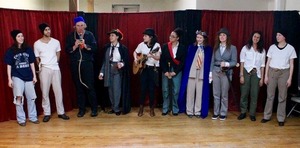The Life and Death of Jack Straw first appeared in print in London in 1594, with no playwright being given credit for it. As far as Bad Quarto and its artistic director Tony Tambasco have been able to ascertain, the play hasn't been staged since that time. That alone is reason enough to catch the production at Studios 353, the chance to see a rare play by one of Shakespeare's contemporaries. But a better reason is the opportunity to watch the members of Bad Quarto in action. Be forewarned that in accordance with its mission, you will never see a well-rehearsed, polished production by them. This is by design a company that seeks to recreate as much as possible the conditions under which these early works were actually performed. Thus you should expect to see minimal staging, ragtag costumes, and the overhead fluorescent lights left on during the entire production. The first preview was also the very first run-through by a gutsy crew acting by the seat of their pants. Yet this is less of a gimmick (or a way of justifying a cheap production) than it is an intent to stay true to the way that such plays would have been experienced by an audience back in the day. The one concession is that we don't have to stand in the manner of the groundlings; there are folding chairs for us. But there is no barrier between us and the cast, and you may very well be called upon to participate in the action from time to time. As for the play, The Life and Death of Jack Straw is about a short-lived and quickly quelled uprising against King Richard II (Maria Pleshkevich). Indeed, it comes off more like a "paid political announcement" in the form of a tribute to the nobility and mercifulness of the king than as a political or history play. Jack Straw (Andre Silva) is killed in battle, and only the two most egregious leaders are executed after the rebellion is quashed. One of these is a rabble-rousing clergyman (James Overton), which perhaps says something about the ongoing power struggle between the church and the monarchy at the time the play was written. The production is decidedly a tribute to the dedication of the cast. Despite the almost non-existent rehearsal time, no one flubbed a line or needed prompting during the 70-minute performance. There is definitely a vibe of all-for-one-and-one-for-all that permeates everything the company does. This includes the troubadour-like songfest of contemporary tunes that takes place before the play commences. It is very appropriate that the company sings Echosmith's The Cool Kids ("I wish that I could be like the cool kids/'Cause all the cool kids, they seem to fit in") before and at the end of the performance. Because it turns out this motley company of theater geeks, like Shakespeare's "Rude Mechanicals" who perform a highly entertaining version of "Pyramus and Thisby" in A Midsummer Night's Dream, wind up being the coolest kids of all.