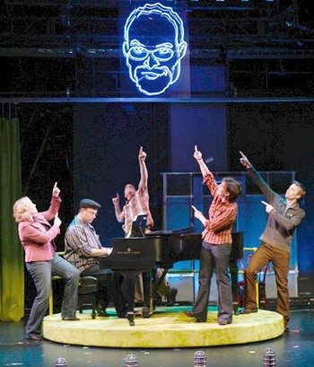 But when Ruggiero allows the music and lyrics to speak plainly for themselves, his interference is intercepted. This is most obvious in the evening's penultimate quartet of solos, in which each performer is allowed an unadorned moment at the center of the spotlight: Binion gets the hushaby "That's Enough for Me" from Romance in Hard Times; Bonds and Heller deliver a one-two punch to the gut of the masculine mystique with their back-to-back renditions of "I Went Fishing With My Dad" and "When the Earth Stopped Turning"; and Wilfert is the picture of passionate optimism in "Anytime (I Am There)," sung by a woman in her final days who is determined those she leaves behind will not be left alone. It's no coincidence that that number, utterly bereft of vocal or musical filigree, is the show's sole genuine showstopper. It speaks so baldly to the hopes and fears at the core of our existence, that it seems to alight not on the ear, the mind, or the heart, but in the soul itself. Finn's talent for presenting life and death as elements of the human equation that are as inviolable as love makes his voice one of the most daring and honest to be found in the theatre today. Too often, Make Me a Song just doesn't let it ring out loudly or strongly enough.