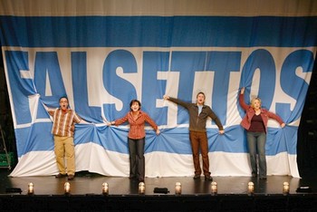 The new Finn revue at New World Stages, Make Me a Song: The Music of William Finn, soars whenever it releases Finn's inner romantic into its eternal home, the theater. Whenever a member of the thrilling four-person cast (Sandy Binion, D.B. Bonds, Adam Heller, and Sally Wilfert), assembled by conceiver and director Rob Ruggiero, steps forth to sing of their innermost feelings, remaining unmoved is one of the greater challenges of the season as it currently stands. But the rest of the time, the show - which premiered at TheaterWorks in Hartford last year - has a harder time finding its footing. Ruggiero may have provided a vehicle for a 90-minute basking in some of the most sweeping show songs of the last 30 years, but he hasn't dispensed any glue for the purposes of uniting the ragtag collection of songs that fill out the bill. It's unclear, for example, what - other than cheap laughs - is gained by Heller's four-part political plaint "Republicans," which climaxes in a surreal "la-la-la" sing-along. Or how site-specific numbers from Songs of Innocence and Experience can be expected to maintain their inspirational punch outside the halls of the Williams College theater they were commissioned to inaugurate. Or why Ruggiero considered a breakneck medley of 10 songs from Falsettos the most appropriate tribute to Finn's best-known and most influential work, making that melodic and sobering portrait of a family in transition look and sound like the most unappealing stage saga of the past two decades.