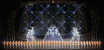 Of course, even those who insist on keeping strictly within the realm of the religious have something for them. Despite all the glitzifying updates imposed by conceiver, director, and choreographer Linda Haberman, who's gone out of her way to make the 75th anniversary production the most memorable yet, the inspirational "Living Nativity" finale is still in place. And it's a credit to Haberman and her hundreds of cohorts that it achieves the all-but-impossible task of topping in spectacle and scope everything that comes before it. Living camels and serene processions of opulently appointed kings just have that effect. But regardless of the type of spirit you think typifies Christmas in New York, it's honored here. Santa and his sleigh? The jolly old elf (nicely impersonated by Charles Edward Hall) flies down from the North Pole and into Radio City on a 3D journey (glasses included with every program). The Nutcracker? Tchaikovsky's timeless ballet gets a (very) slimmed down, and humored-up, rendition. The snow-covered city? A double-decker bus glides through Manhattan streets, taking in the sights and stopping in Central Park to observe two ice skaters in tip-top form. In the most predictable (and least necessary) new additions, Santa even teaches a pair of young boys to believe in the happiness of the season - complete with a day trip to his workshop. When the songs are not of the standard-issue carol variety, they're by composer Mark Hummel and lyricist Mark Waldrop and are as harmless and tuneful in the moment as they are forgettable 30 seconds later. (Under Hummel's baton, however, the oversized orchestra is winning throughout.) Scenic designer Patrick Fahey and costume designer Frank Krenz know the perfect intervals at which to dole out their wares so that you never have time to tire of a single look. And Batwin & Robin Productions has assembled a lively collection of perpetual-motion visuals for the stage-spanning LED light board that functions as an essential part of nearly every set.